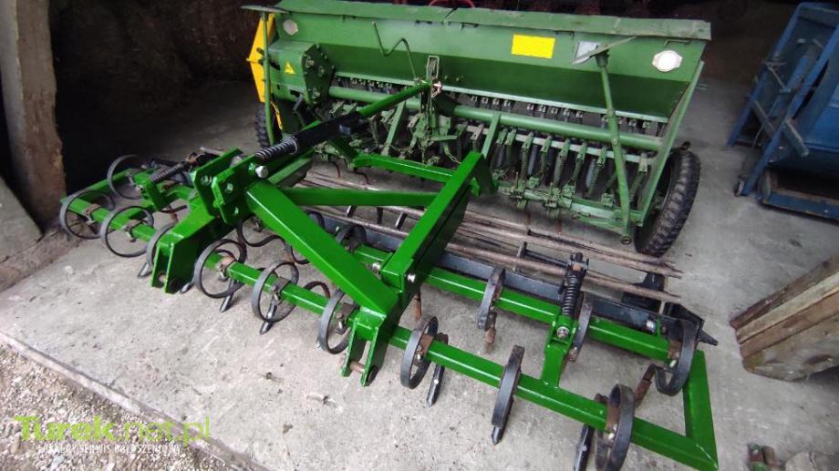 Sprzedam agregat uprawowo-siewny o szerokości roboczej 2,7 m. Agregat wyposażony jest w dwa rzędy redliczek oraz wał rurowy o dużej średnicy co skutecznie zapobiega zapychaniu i zacinaniu się przez kamienie. W zestawie siewnik Poznaniak z...