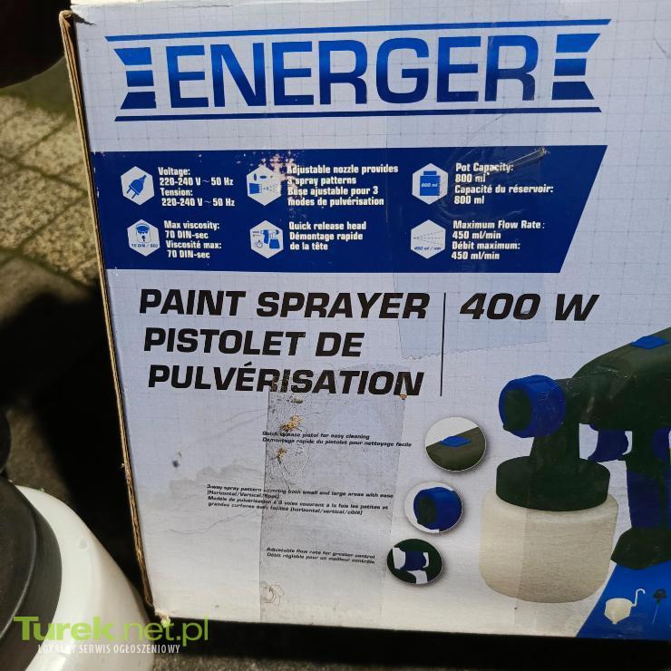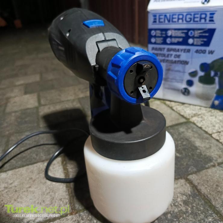 Elektryczna pistolet natryskowy Energer do malowania powierzchni. Urządzenie pozwala na szybkie i równomierne nakładanie farby Posiada zbiornik na płyn oraz regulację strumienia. Praktyczne narzędzie do prac remontowych i dekoracyjnych w...