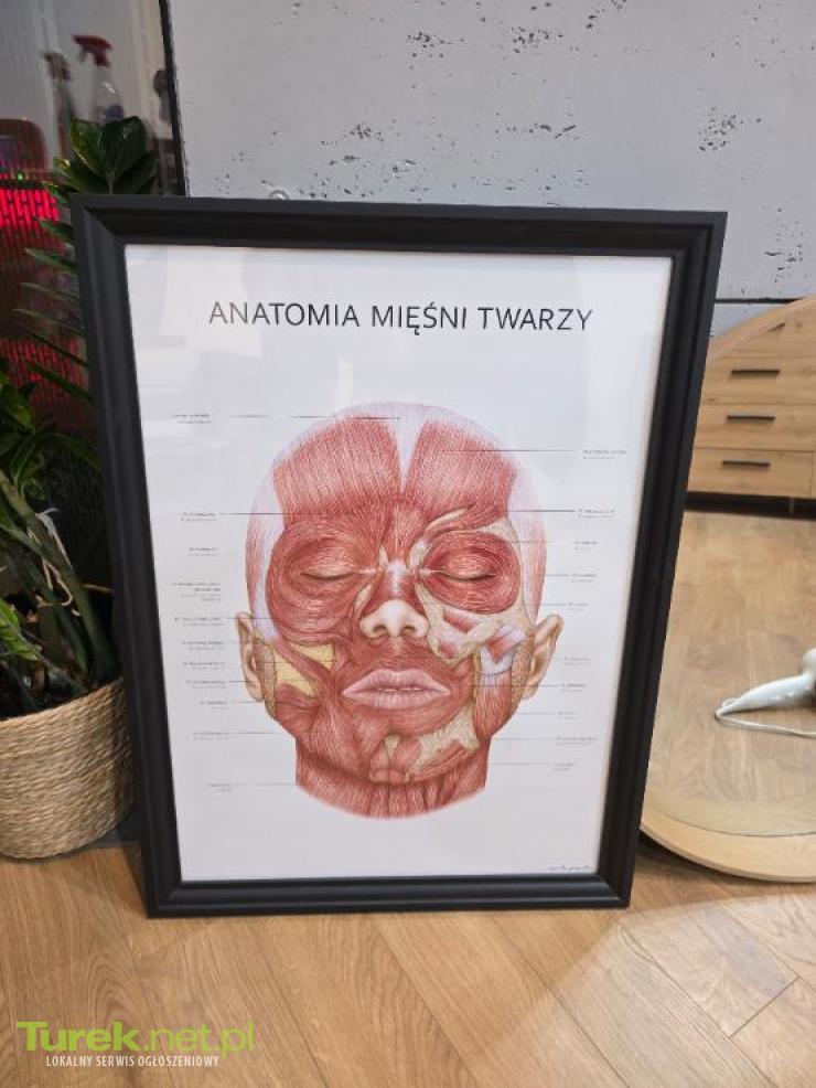 Dzień dobry, do sprzedania mam plakat przedstawiający anatomię twarzy, mięśnie mimiczne oraz unaczynienie twarzy. Format plakatu to B2 (50 na 70 cm) Nadruk wysokiej jakości na papierze o grubej gramaturze. Wydruk pokryty dodatkowo...