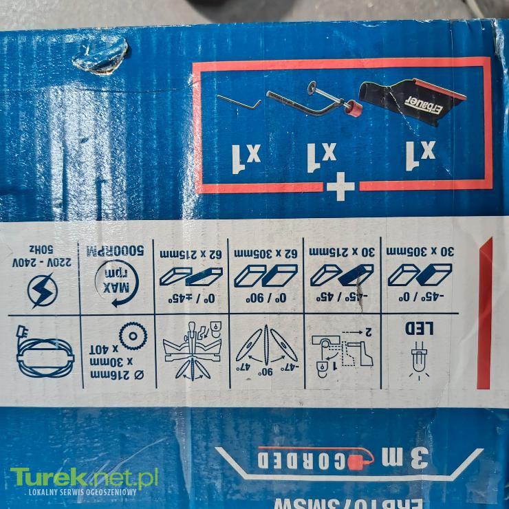 Przedmiotem sprzedaży jest pilarka erbauer o średni 216 mm. Silnik 1400w . Sprzęt w idealnym stanie, produkcja 2025. Możliwość wysyłki za pobraniem, przesyłka lub odbiór osobisty. Dane techniczne: Głębokość cięcia 0° / 0°: 62 x...