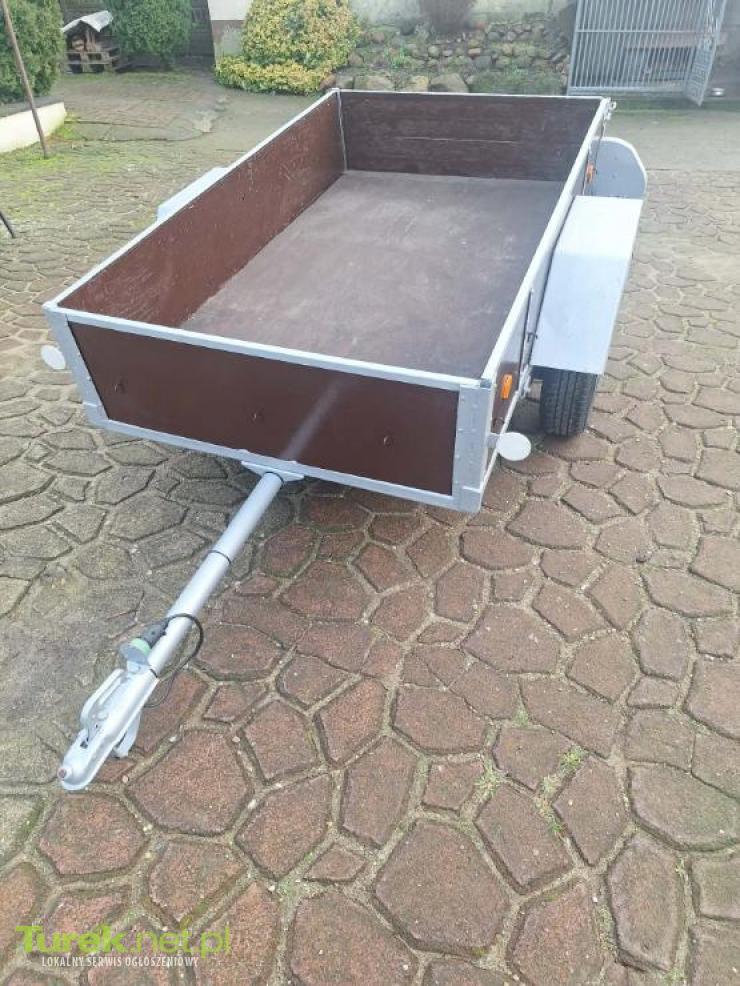 Sprzedam przyczepkę samochodową bez prawa rejestracji. Wymiary skrzyni: długość 205 cm, szerokość 125 cm, wysokość burt 34 cm. Przyczepa jest na wahaczach, posiada gumowe odboje. Koła 14'. Sprawna, stan bardzo dobry. Cena: 1800 zł...