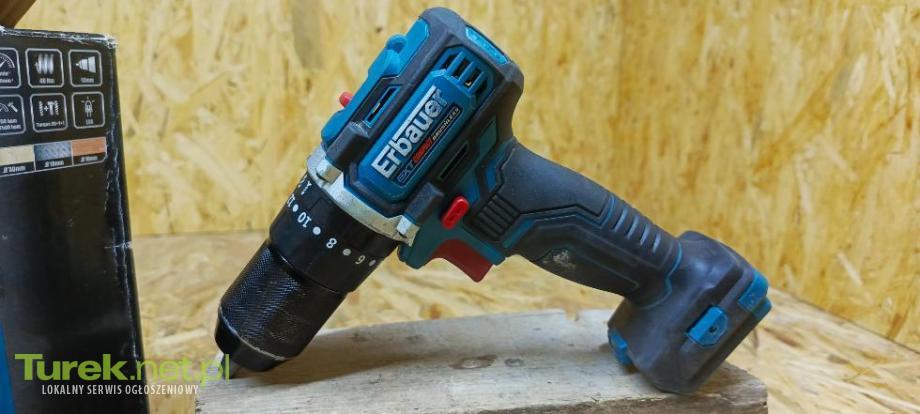 Wiertarko-wkrętarka akumulatorowa Erbauer ecdt18li o momencie obrotowym 120 Nm. - bardzo mocna wkrętarka. Sprzęt używany, sprawny , zdjęcia przedstawiają rzeczywisty stan przedmiotu. Specyfikacja techniczna Typ produktu: Wiertarko-wkrętarka...