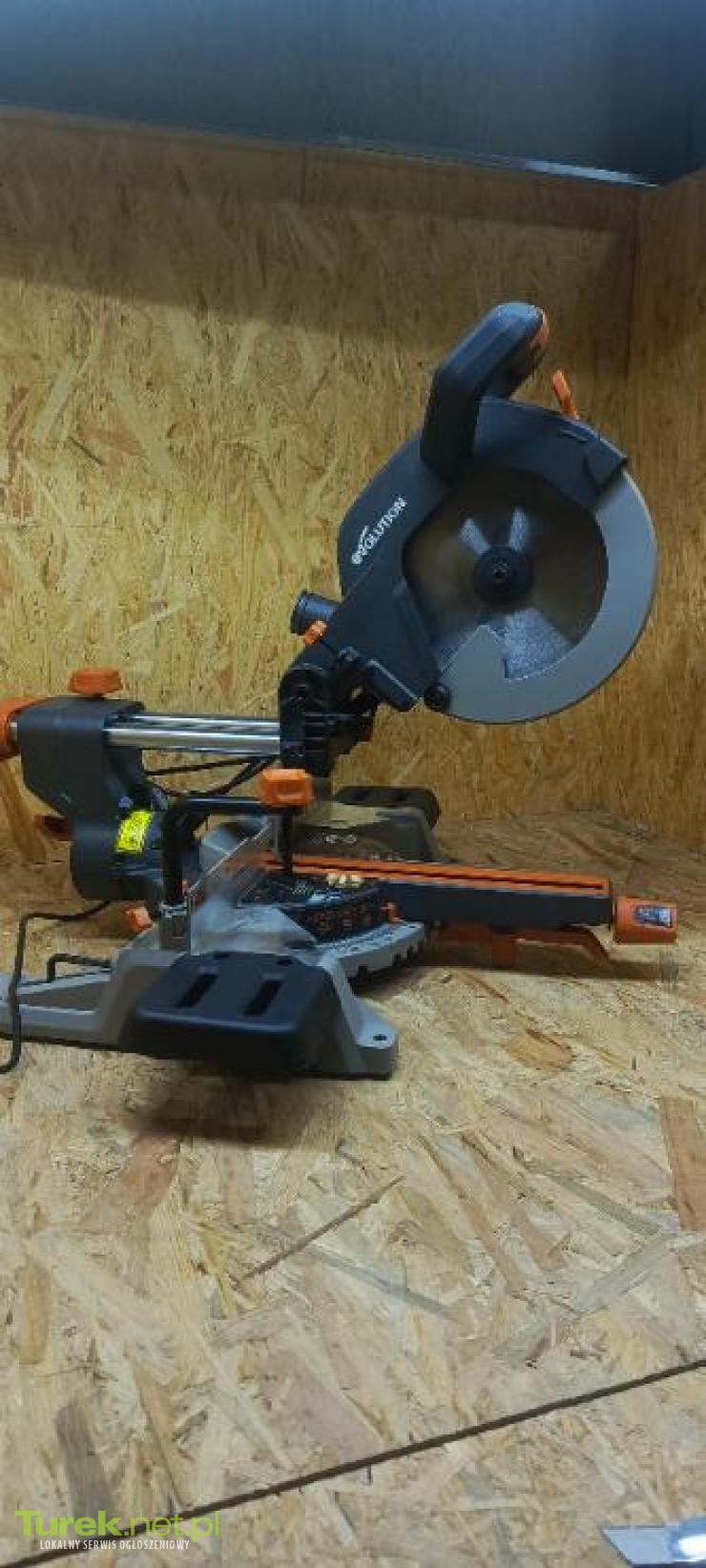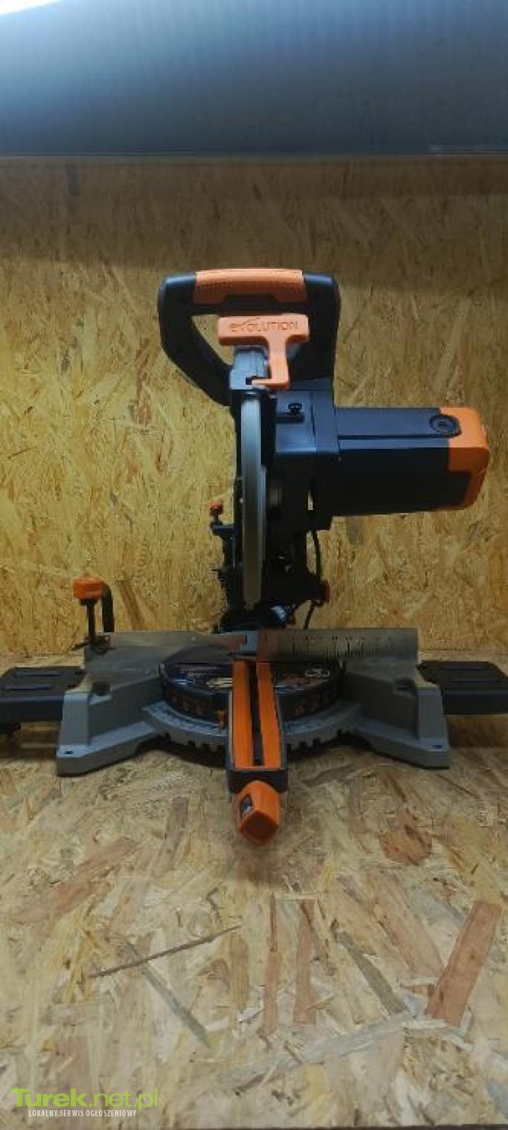 Ukosnica z posuwem Evolution 255 SMS 2000w. Pilarka powystawowa . Przedmiotem sprzedaży jest ukośnica Evolution r255sms Sprzedaje jako używana( stan jak nowa) . Głowica pochylona na prawy bok do 45° , stół obracany w obu kierunkach do 45°....