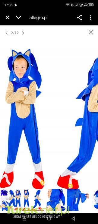 Sprzedam kostium Sonica na 5-7lat nowy nigdy nie zakładany cena do oddania 75zl zainteresowanych zapraszam do kontaktu