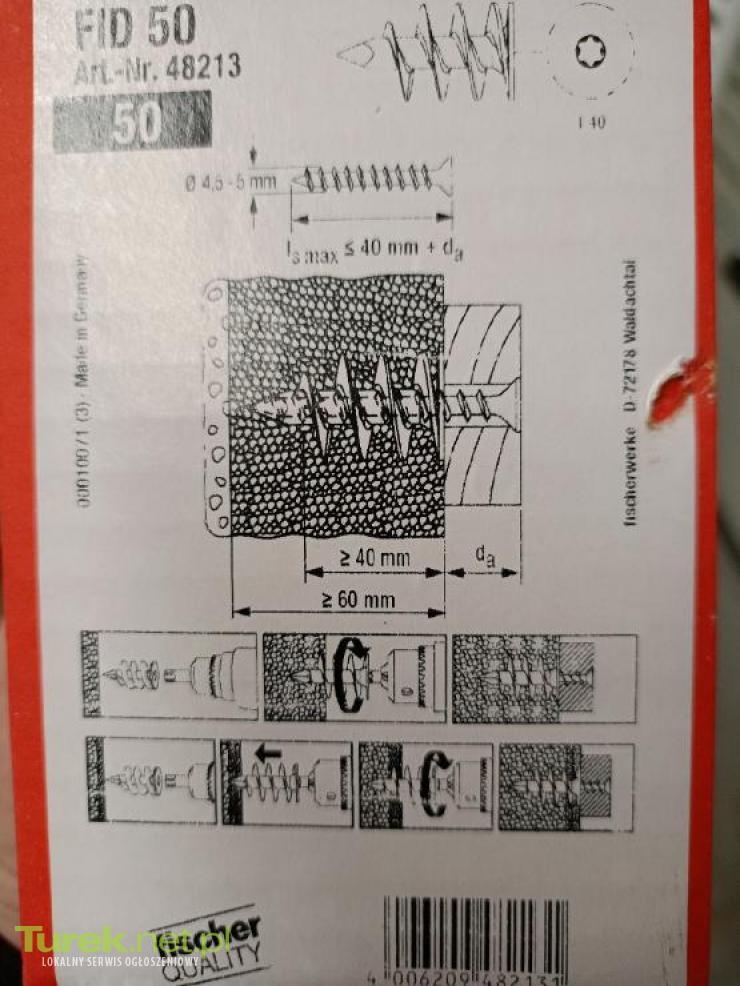Kołki do mocowania w izolacji firmy Fischer nowe 50 szt.w paczce