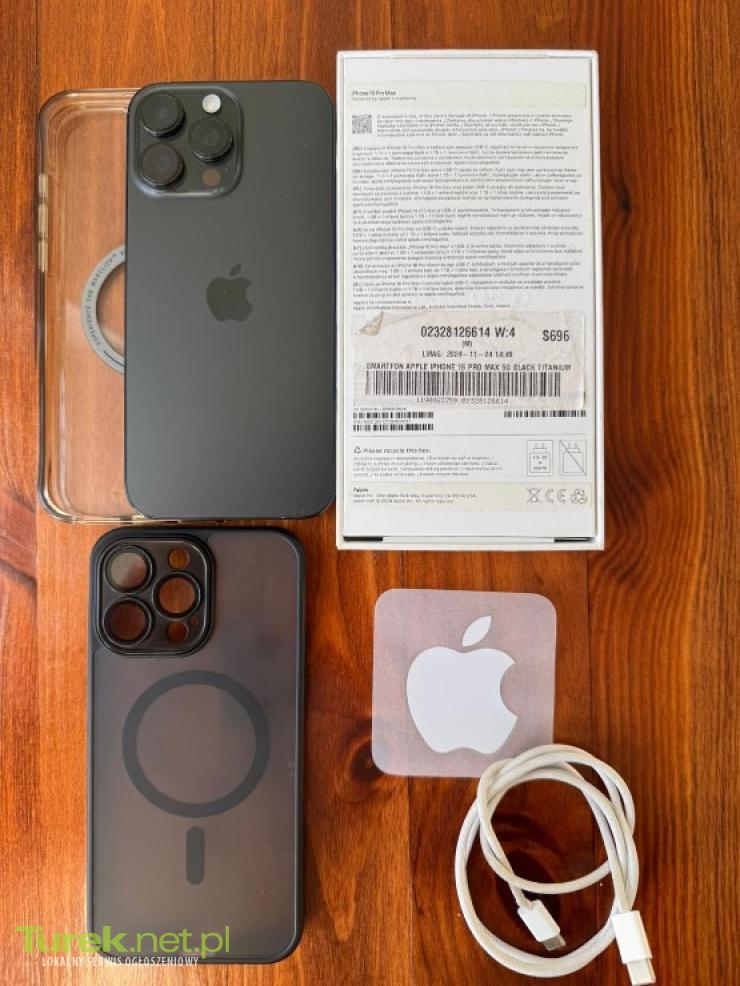 Sprzedam IPhone 15 Pro Max 256G telefon w idealnym stanie technicznym, jak i wizualnym Pełen komplet jaki daje producent. Gwarancja zakupiony w Media Markt faktura zakupu Dodatkowo etui ochronne oraz szkło ochronne na ekranie