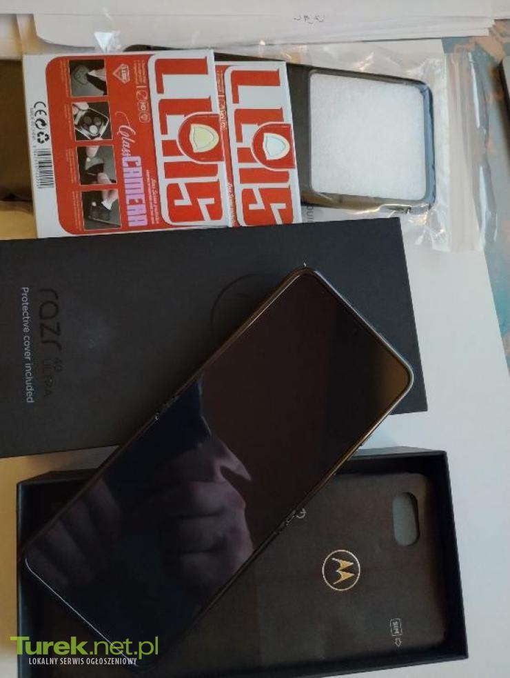 Sprzedam komplet, jak na zdjeciach: - Motorolla Razar 40 Ultra 8/256 Black, - 2 x etui składane, czarne, - 2 x komplet szkieł na ekran zewnętrzny (aparat+ekran), - stan jak na zdjeciach