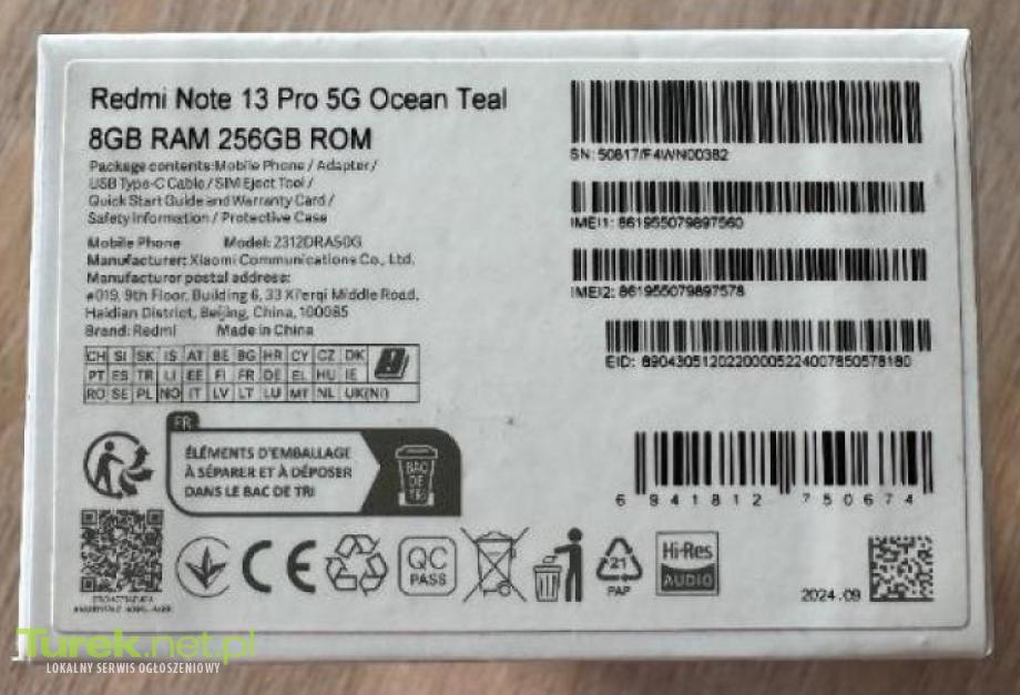 Sprzedam - Xiaomi Redmi Note 13 Pro 5G 8/256GB. Nowy, nierozpakowany z Polskiej dystrybucji.
