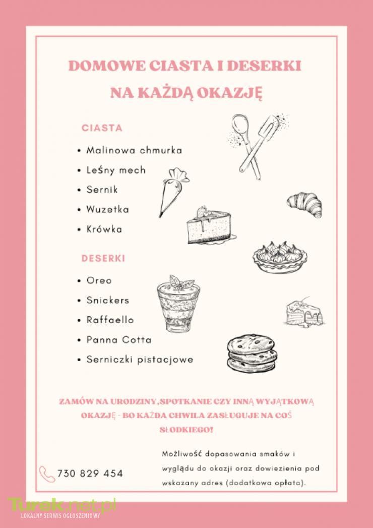 Serdecznie zapraszam do składania zamówień na pyszne deserki ???? bardzo duży wybór. Więcej informacji udzielę telefonicznie.