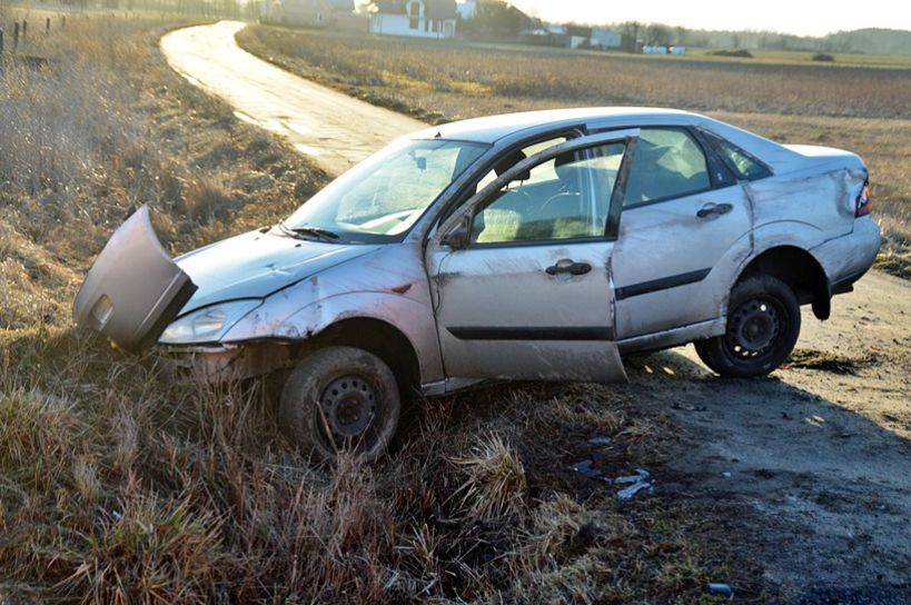 Grzymiszew: Rozbił forda. Łuk drogi okazał się zdradliwy