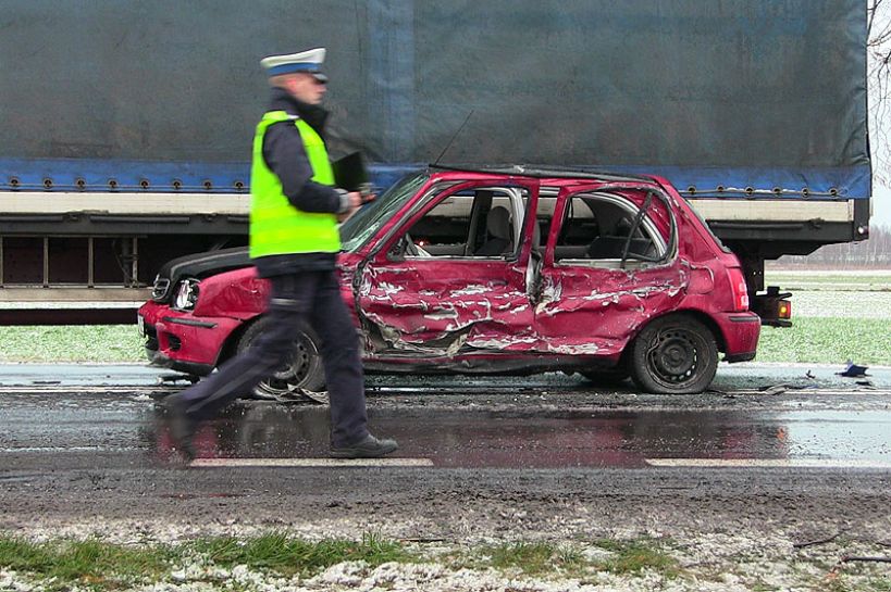 Jadąca samochodem osobowym w kierunku Turku nie chcąc uderzyć w hamujący samochód ciężarowy zjechała na przeciwległy pas jezdni w momencie gdy nadjeżdżał z naprzeciwka inny pojazd. W wyniku zdarzenia samochód osobowy znalazł się pomiędzy dwoma samochodami ciężarowymi.