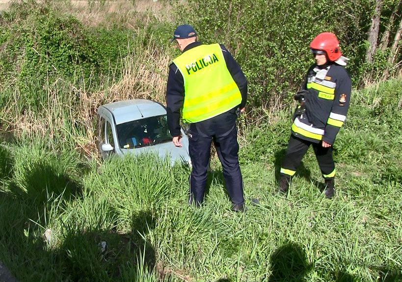 Wideo: Kangoo wpadł w poślizg i do przydrożnej rzeczki w Dąbrowie