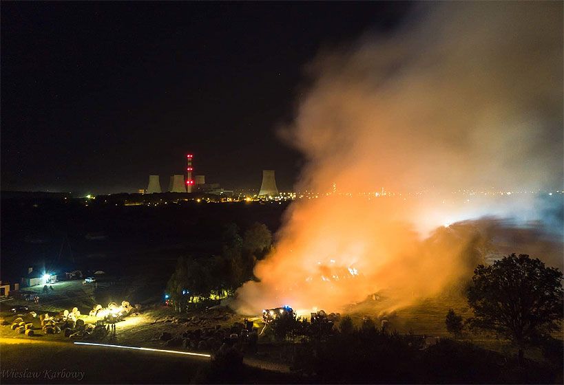 O godzinie 21:34 Centrum Dowodzenia Komendy Powiatowej Straży Pożarnej w Turku, otrzymało zgłoszenie o pożarze w miejscowości Korytków. Kolejna doprecyzowana lokalizacja pożaru wskazywała na miejscowość Pęcherzew. Do zdarzenia zadysponowano jednostki straży pożarnej z PSP Turek, OSP Turek, OSP Kowale Księże oraz OSP Cisew. W działaniach gaśniczych brała także udział Zakładowa Straż Pożarna z KWB Adamów. Na miejscu pracują policjanci, którzy ustalają przyczyny pożaru. Trwa dogaszanie pożaru.