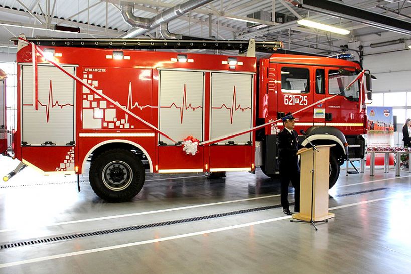 W piątek 4 października br. w Komendzie Powiatowej Państwowej Straży Pożarnej w Turku odbył się uroczysty apel związany z przekazaniem nowego ciężkiego samochodu ratowniczo-gaśniczego GCBA 5,9/40/4 dla PSP Turek. Samochód został zbudowany na podwoziu firmy MAN, natomiast zabudowę wykonała firma Stolarczyk z Kielc.
