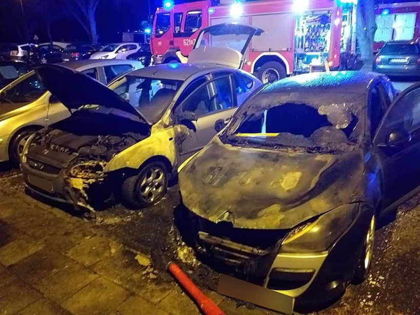 Nocny pożar dwóch samochodów na Wyzwolenia 2