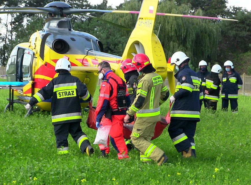 Tego dnia od rana, właścicielowi gospodarstwa, w pracach przy maszynie rolniczej pomagał starszy mężczyzna mieszkaniec wsi Moczydła, położonej niedaleko Boleszczyna. Około południa mieszalnik do zboża wciągnął, a następnie uciął dłoń mężczyzny. Natychmiast wezwano pomoc. Przybyły na miejsce Zespół Ratownictwa Medycznego założył opatrunek na ranę mężczyzny oraz zabezpieczył dłoń. Lekarz zadecydował o wezwaniu Lotniczego Pogotowia Ratunkowego, które przetransportowało rannego do szpitala w Kaliszu. Tam personel medyczny zadecyduje czy poszkodowany zostanie na miejscu, czy trafi do specjalistycznego ośrodka, który podejmie się przyszycia dłoni.