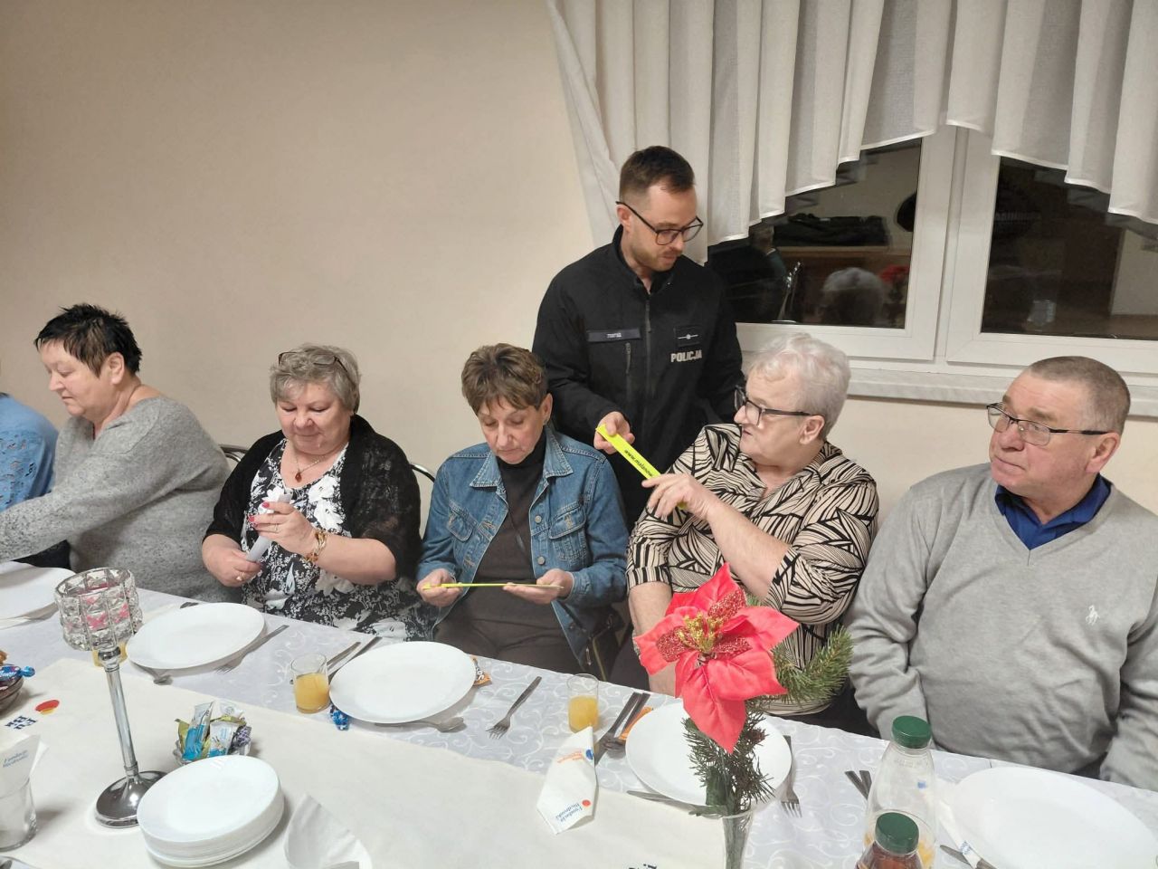 Podczas jednego ze spotkań dzielnicowy z Malanowa rozdał seniorom elementy odblaskowe, przypominając o ich znaczeniu dla bezpieczeństwa pieszych, szczególnie w okresie jesienno-zimowym i po zmroku. Był to dodatkowy element działań profilaktycznych, wykraczający poza temat zagrożeń internetowych.