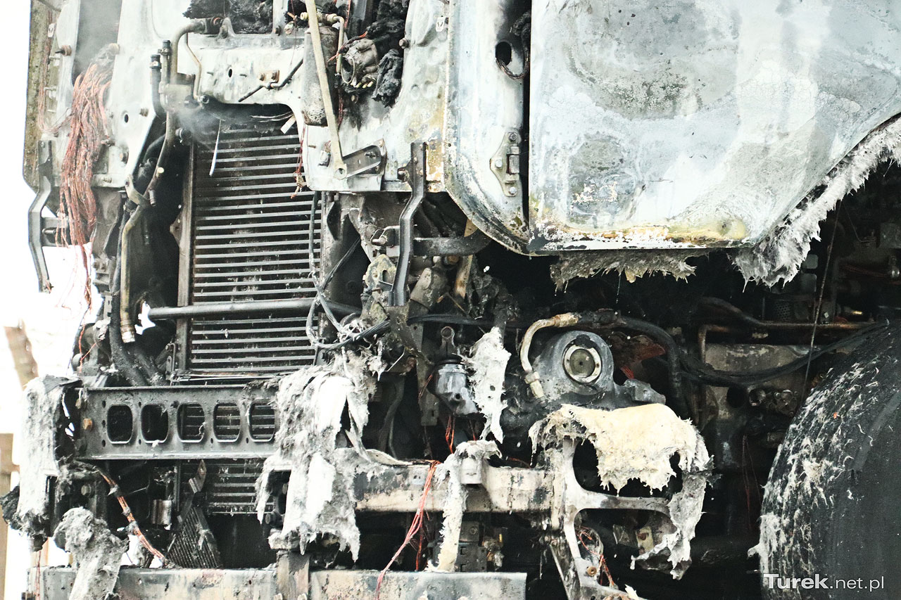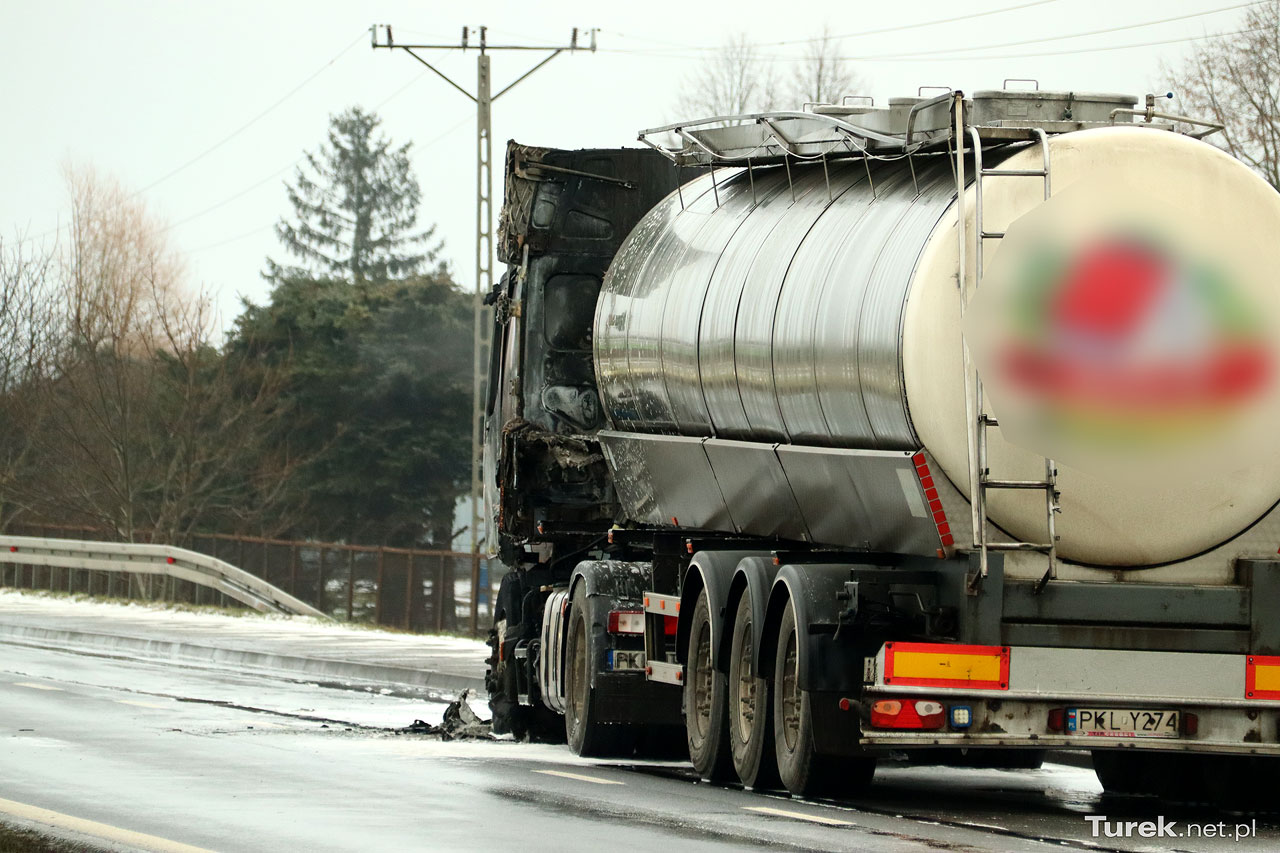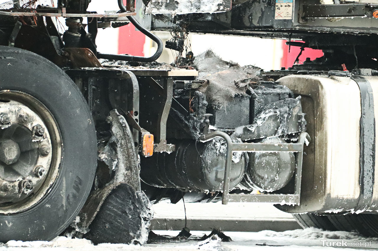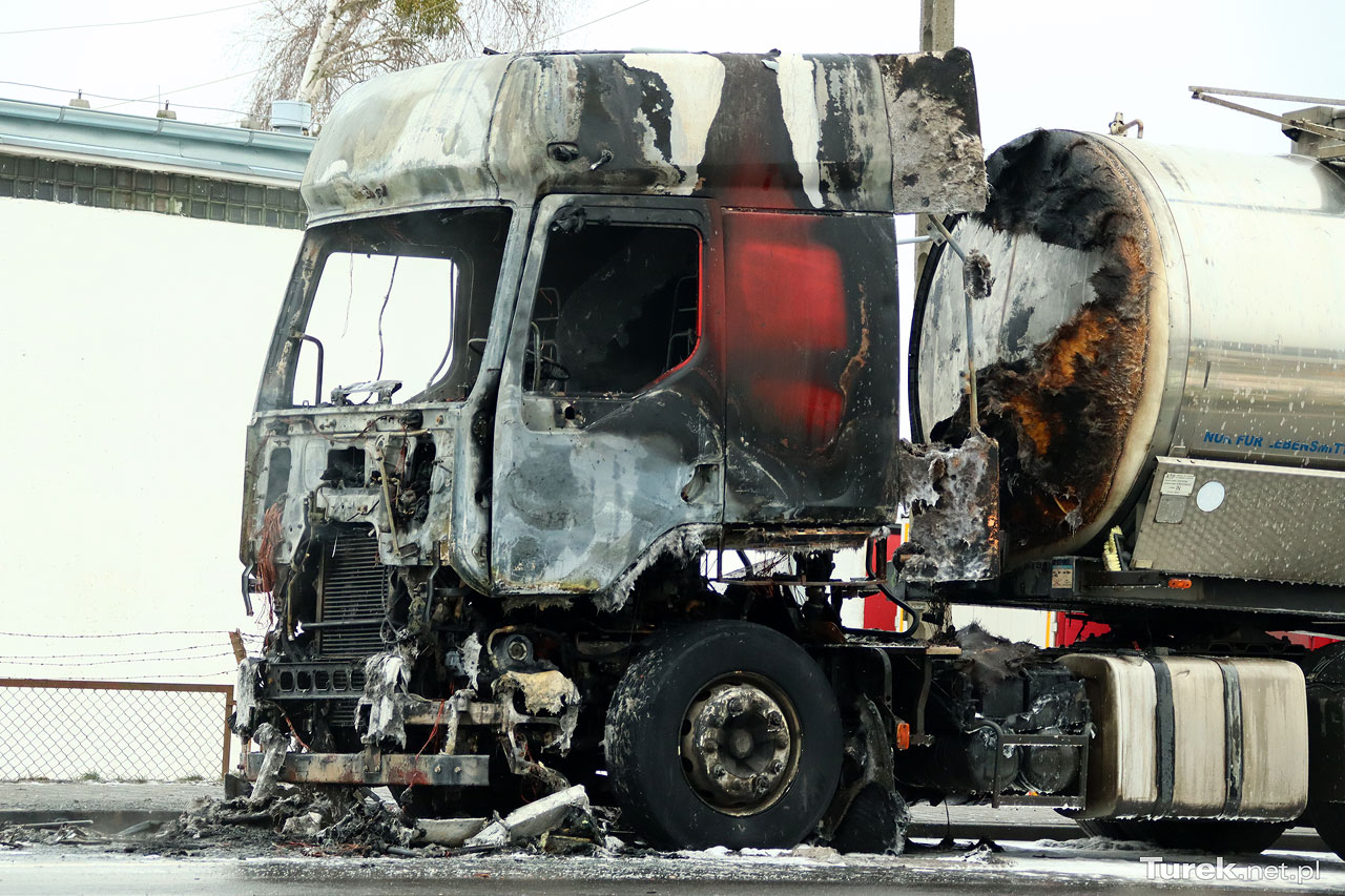 Po godzinie 9.00 doszło w Turku do groźnie wyglądającego pożaru ciągnika siodłowego z cysterną spożywczą. Zdarzenie miało miejsce w poniedziałek 29 grudnia na Alei Jana Pawła II, na Drodze Wojewódzkiej nr. 470. W wyniku pożaru kabina pojazdu uległa całkowitemu spaleniu