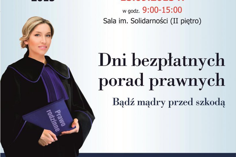 Zapraszamy 15 września (wtorek) w godzinach od 9.00 – 15.00 do Starostwa Powiatowego w Turku. W sali im. "Solidarności" (ul. Kaliska 59, II piętro) radcy prawni będą służyć bezpłatną pomocą i doradztwem w rozwiązaniu spraw z różnych dziedzin prawa: pracy, spadkowego, rodzinnego i opiekuńczego, gospodarczego, bankowego, podatkowego oraz ubezpieczeń społecznych.