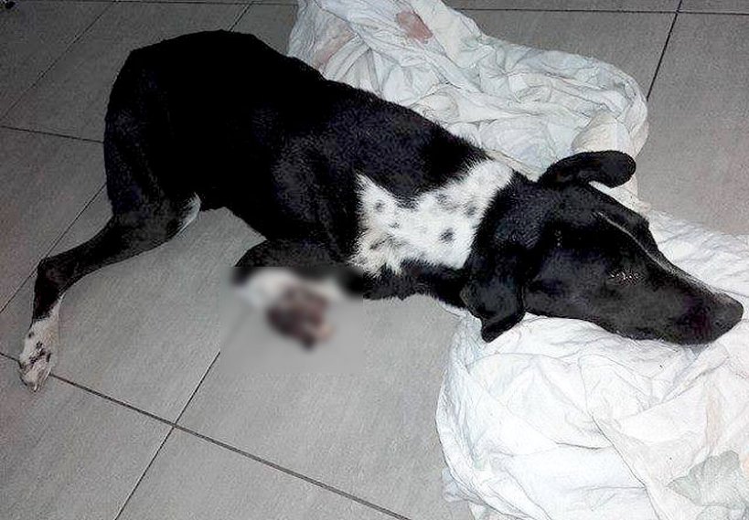 Kobieta, która zadzwoniła do konińskiego oddziału Towarzystwa Opieki nad Zwierzętami, była zrozpaczona. Pracownik TOZu pojechał we wskazane przez nią miejsce i dzięki jego pomocy pies natychmiast przewieziony został do weterynarza. Rana jest bardzo rozległa, z fragmentu kończyny widać odsłonięte kości. W dodatku wdało się zakażenie i z rany sączy się ropna wydzielina. Pies jest w tej chwili leczony silnymi antybiotykami. Obecnie niemożliwe jest wykonanie zabiegu operacyjnego z powodu zbyt dużego osłabienia psa.