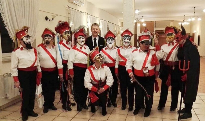 Gdy uczestnicy Spotkania zasiedli za stołem wigilijnym, rozległ się dzwonek i pojawili się niespodziewani goście. To Wilijarze, w przepięknych strojach, w misternie przygotowanych czapkach, w ozdobnych maskach i z „kanciuchami” w rękach. Ich występ spotkał się z serdecznym przyjęciem przez zebranych. Gromkim brawom nie było końca. Gwoli ścisłości dodać należy, że tę piękną staropolską tradycję kultywują Panie z Kół Gospodyń Wiejskich z Gminy Brudzew. Nadmienić należy, że słodkie upominki dla „Wilijarek” ufundował Przewodniczący Bryl. O prezencie wigilijnym dla wszystkich nie zapomniał także starosta Bartosik, jak również dyrektor Zygmunt.