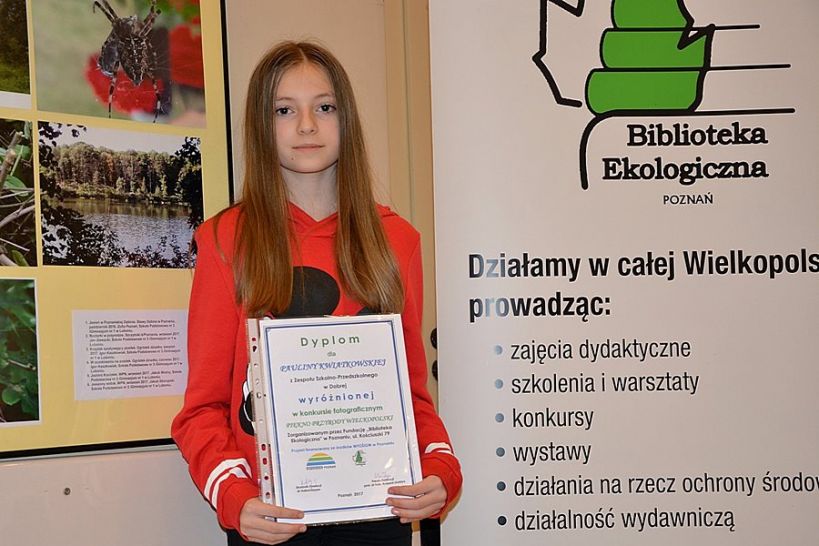 Paulina Kwiatkowska - uczennica klasy 2 gimnazjum ZS-P w Dobrej, zdobyła wyróżnienie w wojewódzkim konkursie fotograficznym „Piękno przyrody Wielkopolski”, zorganizowanym przez Fundację Biblioteki Ekologicznej oraz Regionalne Centrum Edukacji Ekologicznej w Poznaniu.