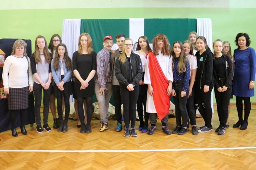 Uczniowie klasy VII pokazali, jak zło można pokonać idąc za Chrystusem. Pani Gabriela Bartczak już od 10 lat pracuje z kolejnym pokoleniem uczniów nad pokazaniem Męki Pańskiej. Pomysłów nie brakuje na to, co czyni sercem i duszą Pani Gabriela. Pani Mirosławie Tarłowskiej dziękujemy za przygotowanie uczniów.