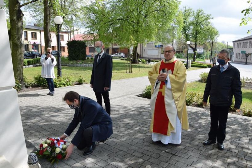 W tym roku ze względu na panującą sytuację epidemiologiczną i związane z nią obostrzenia, majowe święto uczczono inaczej niż zwykle. Po Mszy św. w intencji Ojczyzny Burmistrz Krzysztof Roman, Przewodniczący Rady Miejskiej Andrzej Janczewski, Wiceprzewodniczący Wit Bryliński oraz ksiądz proboszcz Stanisław Nowak złożyli kwiaty pod Obeliskiem Upamiętniającym 100-lecie Odzyskania Niepodległości, Pomnikiem Tadeusza Kościuszki