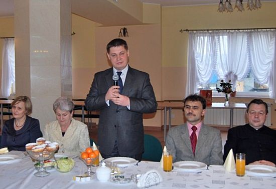 Ksiądz prałat Stanisław Płaszczyk przekazał zgromadzonym obrazki z wizerunkiem bł. ks. Jerzego Popiełuszki oraz opłatki, którym wszyscy się podzielili. Po występach artystycznych i wspaniałych życzeniach prezes stowarzyszenia Zofia Szczepaniak zaprosiła wszystkich na obiad, a następnie do wspólnej zabawy na parkiecie, która trwała do późnych godzin wieczornych.