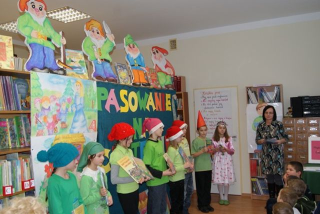 Po krótkiej części artystycznej, królewna dokonała aktu pasowania specjalnie przygotowana na te okazje „Magiczna księgą”. Na pamiątkę uroczystości pierwszoklasiści otrzymali pamiątkowe dyplomy, książki, słodycze oraz zakładki przygotowane przez starszych kolegów i koleżanki. Nowym czytelnikom życzymy wiele satysfakcji i radości z czytania.