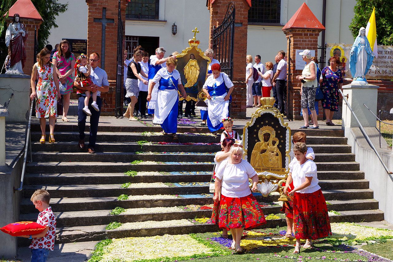 Kwietne dywany w Skęczniewie. Ta tradycja wywodzi się z lat powojennych!