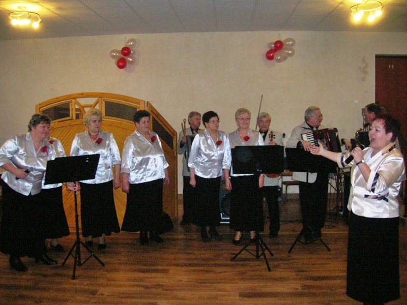 Dzieci ze szkoły podstawowej zaprezentowały niezwykły program artystyczny, w którym ukazały rolę kobiety w minionych dziesięcioleciach. W dalszej części programu wystąpił gość specjalny - zespół ludowy Tradycja z Malanowa, który wykonał popularne pieśni i piosenki. Zrelaksowane i pełne dobrego humoru uczestniczki spotkania czuły się doskonale, nie zabrakło rozmów przy kawie i słodkościach, a nawet wspólnych śpiewów.