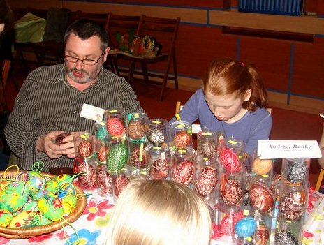 W tym roku podczas warsztatów dzieliło się swoimi umiejętnościami i prezentowało swoje wyroby wielu twórców ludowych z naszego regionu. Zobaczyć można było sposoby wykonywania pisanek (zdobionych woskiem, wydrapywanych, malowanych farbami akrylowymi, ozdabianych bibułą i wstążkami), a także palm wielkanocnych, kwiatów z bibuły i kartek świątecznych.