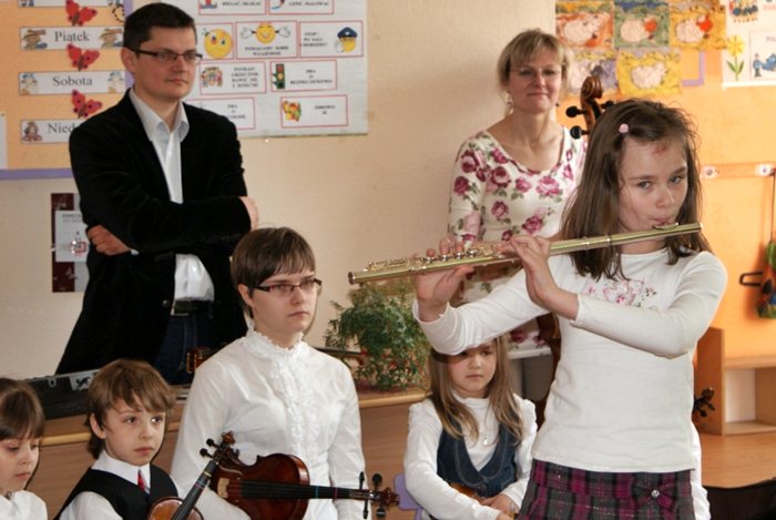 Jeszcze nie tak dawno młodzi instrumentaliści sami uczęszczali do przedszkoli. Tymczasem 18 kwietnia przybyli do Władysławowa, by popisać się swoimi umiejętnościami przed młodszymi kolegami i zachęcić ich do muzykowania. Ola Sylwestrzak, Kacper Michalak, Oliwia Zając, Anielka Szewczyńska oraz Martyna Klimek zagrali na skrzypcach, Sandra Bocian oraz Weronika Dziamara na wiolonczeli, a Paulinka Nowak na flecie. Każdy ze skrzypków oraz flecistka zaprezentowali się solowo. Wiolonczele zabrzmiały w trio wraz z opiekunką. Na koniec koncertu cała orkiestra zagrała wspólnie.