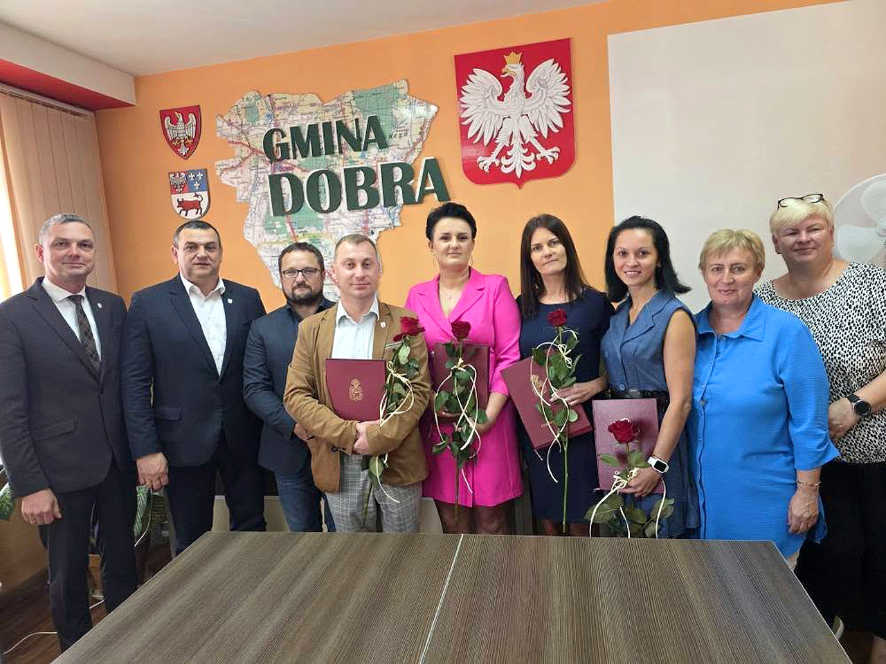 Dwa dni wcześniej, 26 sierpnia, w Urzędzie Miejskim w Dobrej akty mianowania na stopień nauczyciela mianowanego wręczył Burmistrz Tadeusz Gebler. W gronie wyróżnionych znaleźli się Ewa Becalik, Bernadeta Żubr i Tomasz Gil z Zespołu Szkolno-Przedszkolnego w Dobrej oraz Katarzyna Gil z placówki w Piekarach. W uroczystości uczestniczyli również Przemysław Tomczak, zastępca burmistrza, Barbara Stasiak z Urzędu Miejskiego oraz dyrektorzy szkół Aleksandra Kotas i Marek Milczarek. Burmistrz dziękował za dotychczasową pracę i podkreślał, że awans to dowód kompetencji i zaangażowania pedagogów.