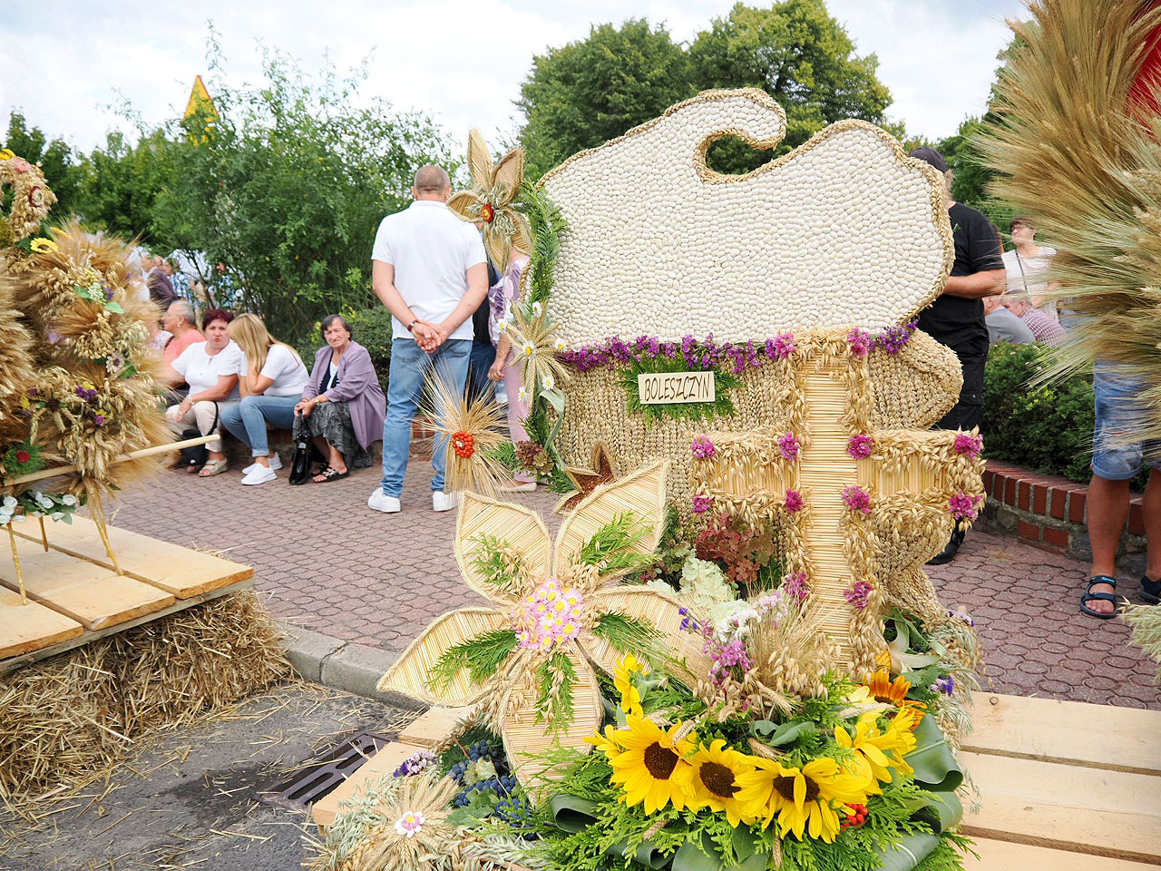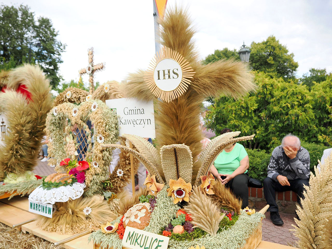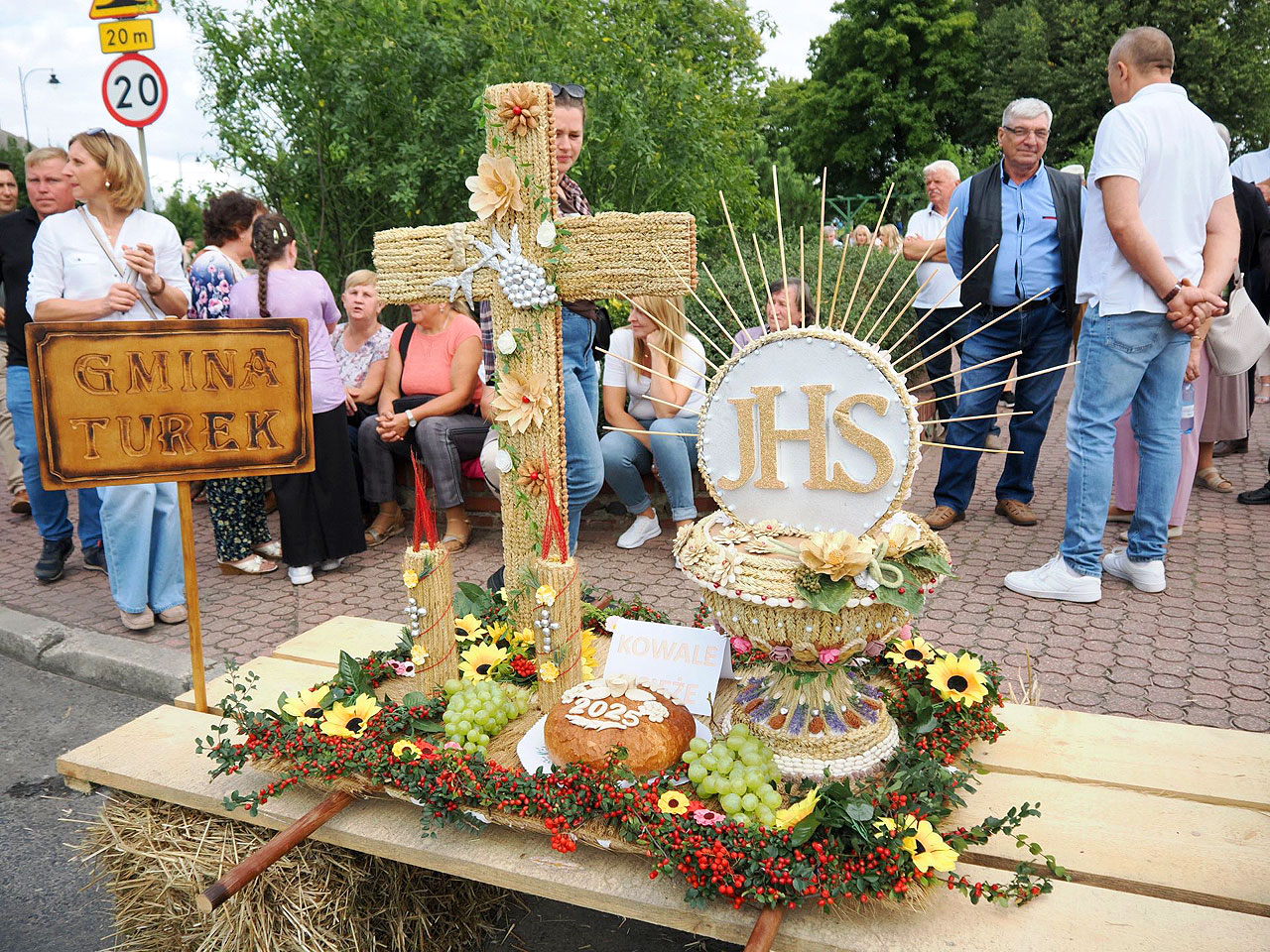 Jednym z najważniejszych momentów było przekazanie chleba staroście tureckiemu Janowi Smakowi i wójt gminy Elżbiecie Klanowskiej. Gospodarze przyjęli go z rąk Bogumiły i Arkadiusza Golczyńskich – starostów tegorocznych dożynek – po czym podzielili bochen i rozdali go uczestnikom. W honorowym miejscu na rynku ustawiono również powiatowy wieniec dożynkowy, który przez cały dzień przypominał o znaczeniu wspólnoty i rolniczego trudu.