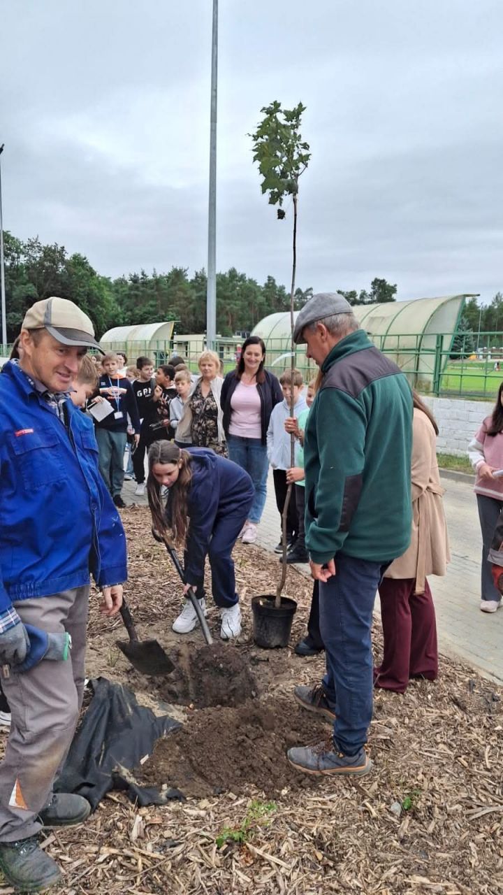 Tuliszków: Nowa zieleń przy szkole i stadionie. Uczniowie i burmistrz wspólnie sadzili drzewa
