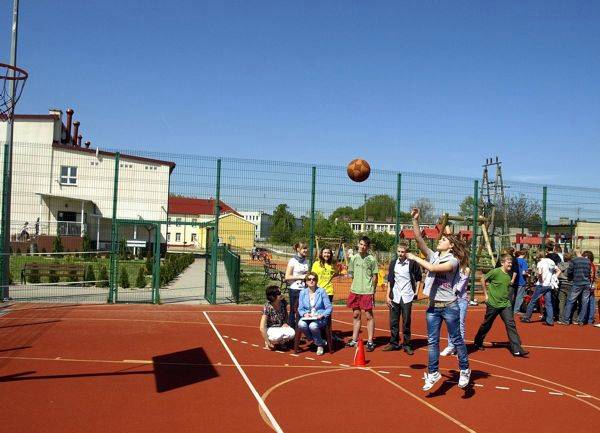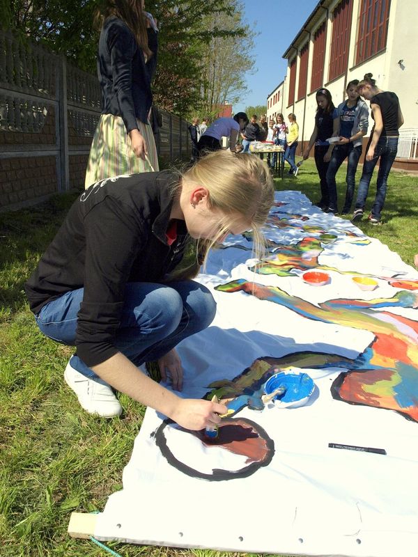 Drugi punkt imprezy - jej sportowo- plastyczna cześć to wielobój sportowy i konkurs plastyczny „Ruch w obrazie". Wszyscy uczniowie z pasją zaliczali poszczególne sportowe stacje, bo na co dzień nie mają możliwości choćby rzucać jajem, a była to jedna z konkurencji. W konkursie plastycznym z kolei wzięły udział trzy drużyny, w tym drużyna nauczycieli. Na koniec uczniowie przykońskiego gimnazjum rozegrali towarzyski mecz koszykówki z kolegami z Dobrej. W przerwie meczu rozdano nagrody najlepszym sportowcom i plastykom oraz rozlosowano nagrody wśród wszystkich uczniów biorących udział w konkurencjach. Nagrody z okazji Święta Patrona ufundowała Dyrektor Gminnego Ośrodka Kultury, natomiast lody i napoje dla uczniów przygotowała Rada Rodziców.