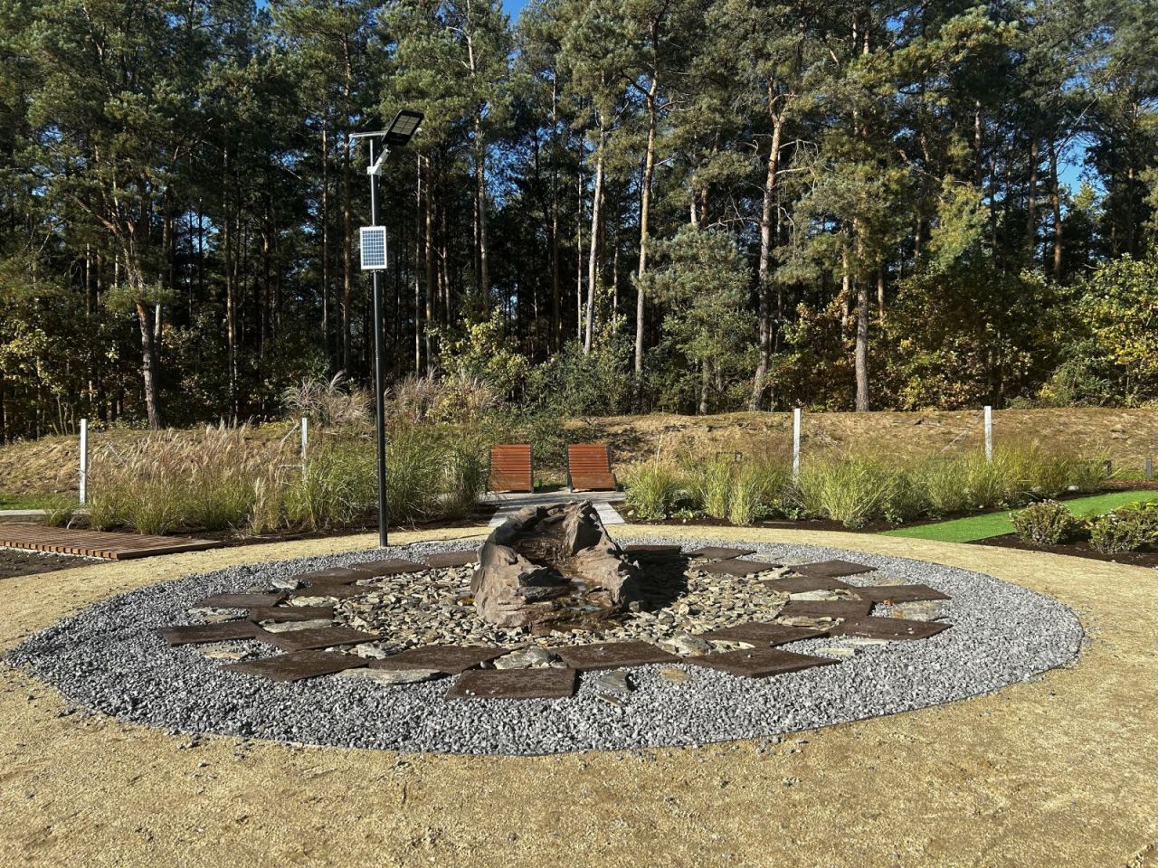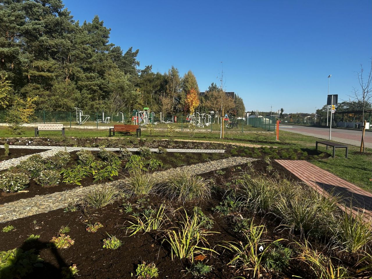 Na terenie obiektów pojawiły się również ogród deszczowy i ogród sensoryczny, które pełnią funkcje edukacyjne i rekreacyjne. Całość uzupełnia instalacja paneli fotowoltaicznych i lamp solarnych, zapewniających energooszczędne oświetlenie i zasilanie.