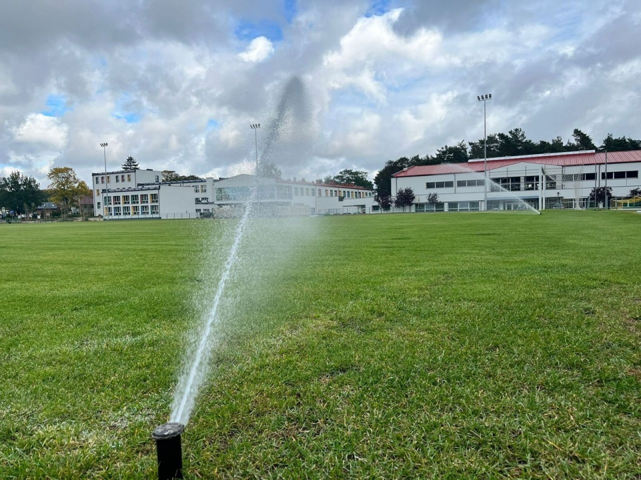 W ramach inwestycji wybudowano ponad 700 metrów kanalizacji deszczowej, sześć zbiorników retencyjnych oraz separator zanieczyszczeń, które umożliwiają gromadzenie i oczyszczanie wody deszczowej. Zgromadzona woda służy teraz do podlewania murawy boiska poprzez nowoczesny system zraszaczy – rozwiązanie ekologiczne i ekonomiczne zarazem.