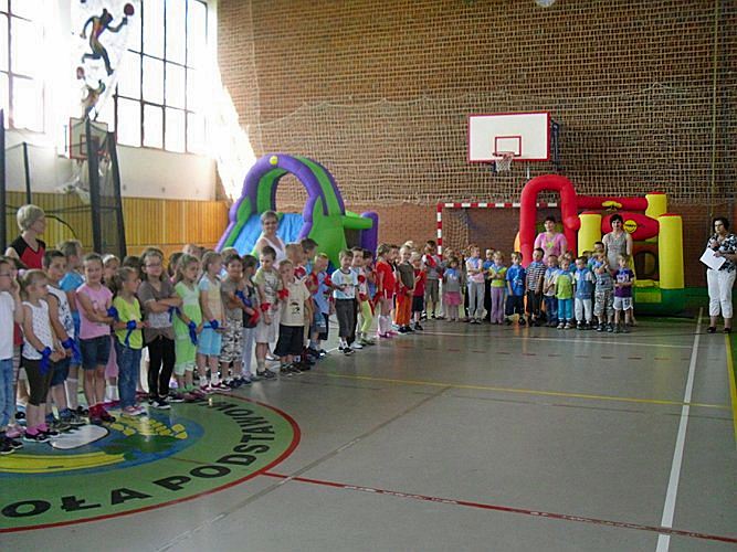 Maluchy wyglądały w ten dzień inaczej niż zwykle bo każda grupa oznakowana była różnymi kolorami chust. Na uroczystość przybyli zaproszeni goście: dyrektor GOK w Przykonie, pani Ewa Banasiak, dyrektorzy Zespołu Szkół w Przykonie, pan Zdzisław Nowak i pani Maria Kolińska. Po złożeniu życzeń przez zaproszonych gości przyszedł czas na wspaniałą zabawę. Przedszkolaki dały z siebie wszystko bawiąc się na zjeżdżalniach, basenie z piłkami, trampolinie oraz biorąc udział w wielu konkurencjach sportowych. W chwilach odpoczynku po szaleńczej zabawie dzieci mogły pomalować swoje buźki na wybrany przez siebie, bajkowy wzór.