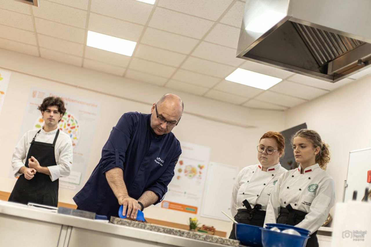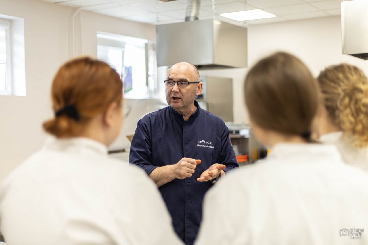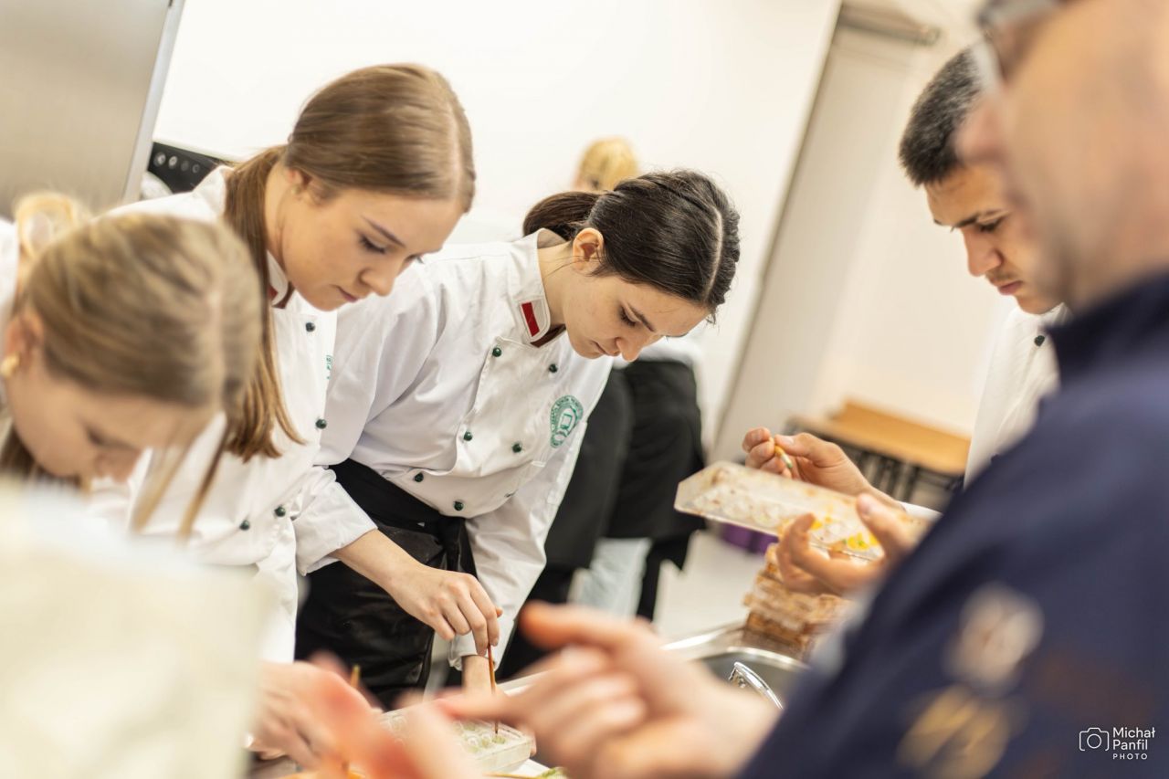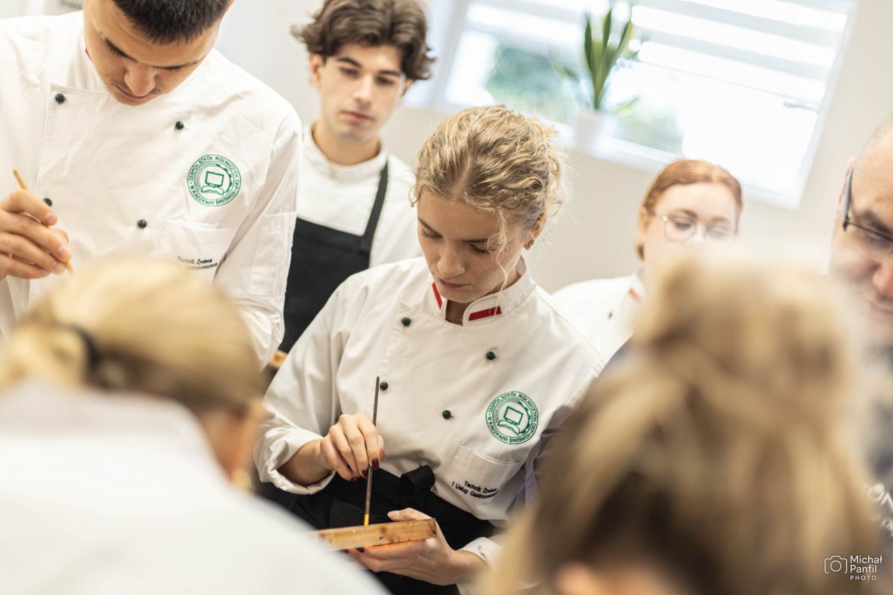 W pracowni gastronomicznej Zespołu Szkół Rolniczych CKP w Kaczkach Średnich odbyły się warsztaty Akademii Mistrza, prowadzone przez Mieczysława Chojnowskiego, utytułowanego Mistrza Świata Cukierników. W zajęciach udział wzięli uczniowie klas III, IV i V kształcący się w zawodzie technik żywienia i usług gastronomicznych. Inicjatorką wydarzenia była Ewa Kowalska, nauczycielka przedmiotów gastronomicznych, która od lat angażuje się w organizację zajęć z praktykami z branży.