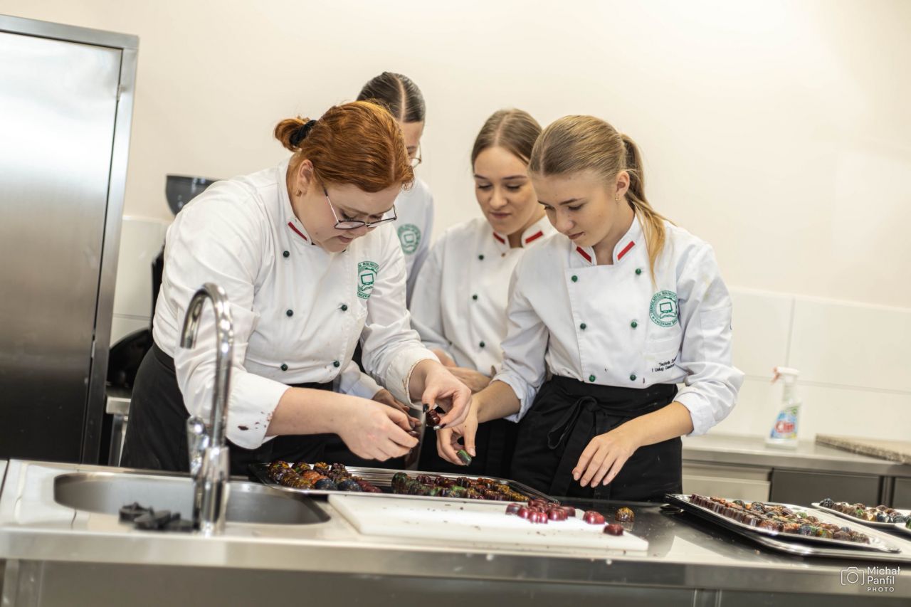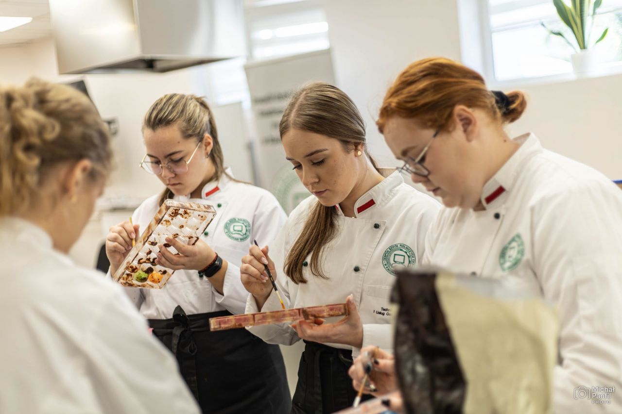 Spotkanie zakończyło się degustacją przygotowanych wyrobów, które zwracały uwagę zarówno smakiem, jak i estetyką wykonania. Mieczysław Chojnowski podkreślił znaczenie precyzji, konsekwencji i dbałości o detal w pracy cukiernika. Warsztaty pokazały uczniom, że najwyższy poziom rzemiosła wynika z połączenia wiedzy, treningu i dobrej organizacji pracy.