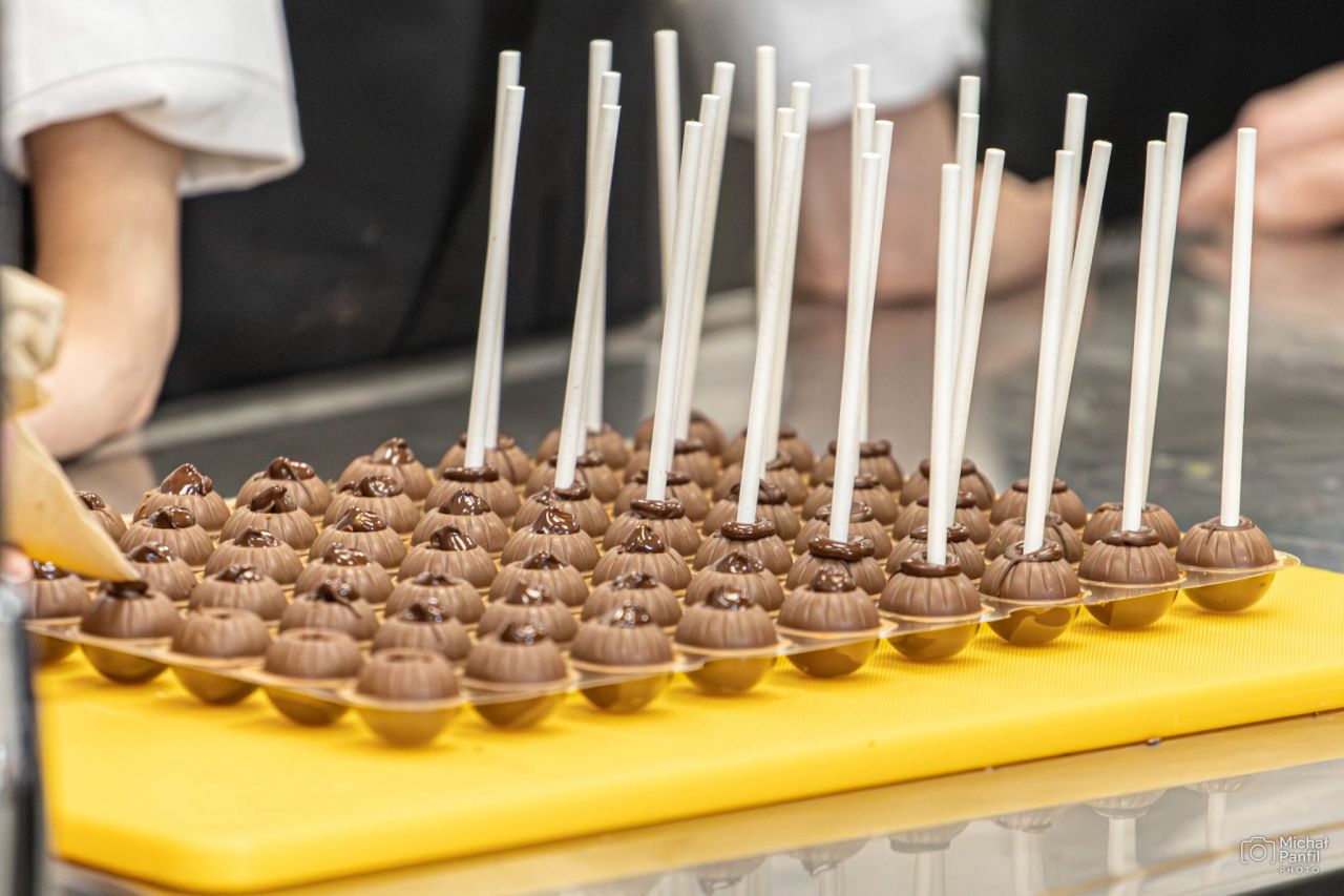 Program warsztatów koncentrował się na pracy z czekoladą. Uczniowie poznawali zasady profesjonalnego temperowania czekolady, uczyli się przygotowywać ganasze, praliny, tabliczki czekolady oraz trufle. Mieczysław Chojnowski krok po kroku tłumaczył, jak osiągnąć odpowiednią strukturę, połysk i smak, a następnie nadzorował samodzielną pracę uczniów. Każdy z uczestników miał możliwość przełożenia teorii na praktykę, pracując na produktach, których jakość odpowiada standardom profesjonalnej cukierni.
