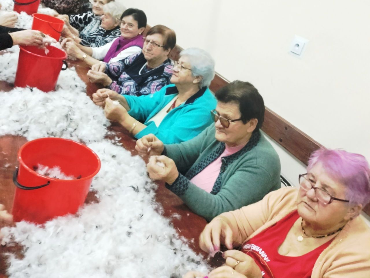 Darcie pierza przez lata było elementem codzienności wiejskich gospodarstw, zajęciem wymagającym czasu, cierpliwości i wzajemnej pomocy. Kobiety zbierały się w jesienne wieczory, by skubać pierze, wymieniać się opowieściami, wspierać się w pracy i pielęgnować relacje międzypokoleniowe. Gdy tradycja zaczęła zanikać, Danuta Kałużna i Jan Langa postanowili ocalić ją poprzez wspólne wydarzenie. Tak narodził się Pierzok – inicjatywa, którą przez lata rozwijano własnymi siłami, z czasem angażując coraz szersze grono mieszkańców.