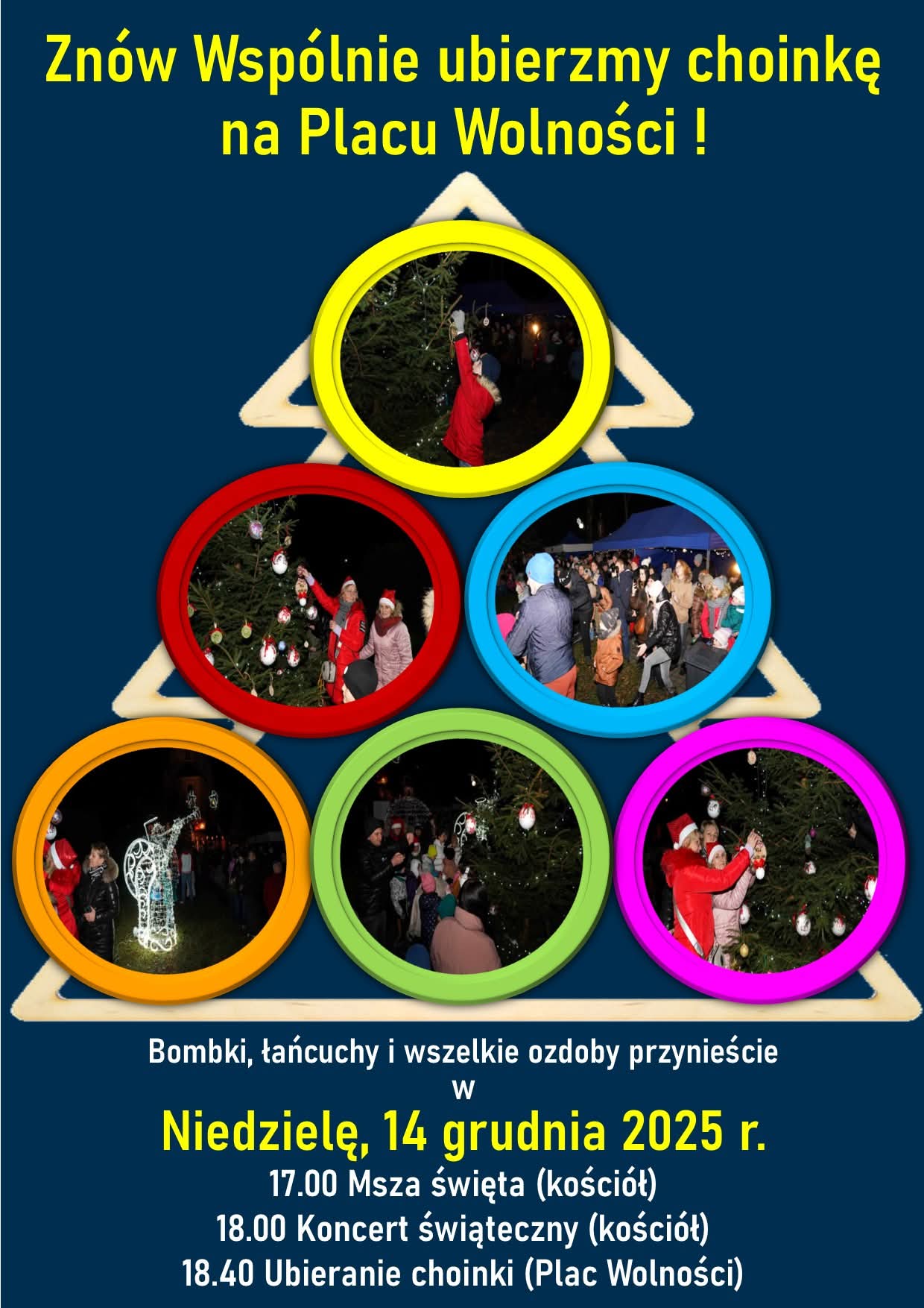 W sobotę 13 grudnia o godz. 11.00 przy ul. Spółdzielców 2 mieszkańcy spotkają się, by wspólnie ubrać osiedlową choinkę. Organizatorzy zachęcają do przyniesienia własnych ozdób. Bezpośrednio po wydarzeniu, w godzinach 12.00–15.00, w Klubie Tęcza przy ul. Spółdzielców 4 odbędzie się „Świat Klocków LEGO – Budujemy Święta”, z wystawami, warsztatami i konkursami.