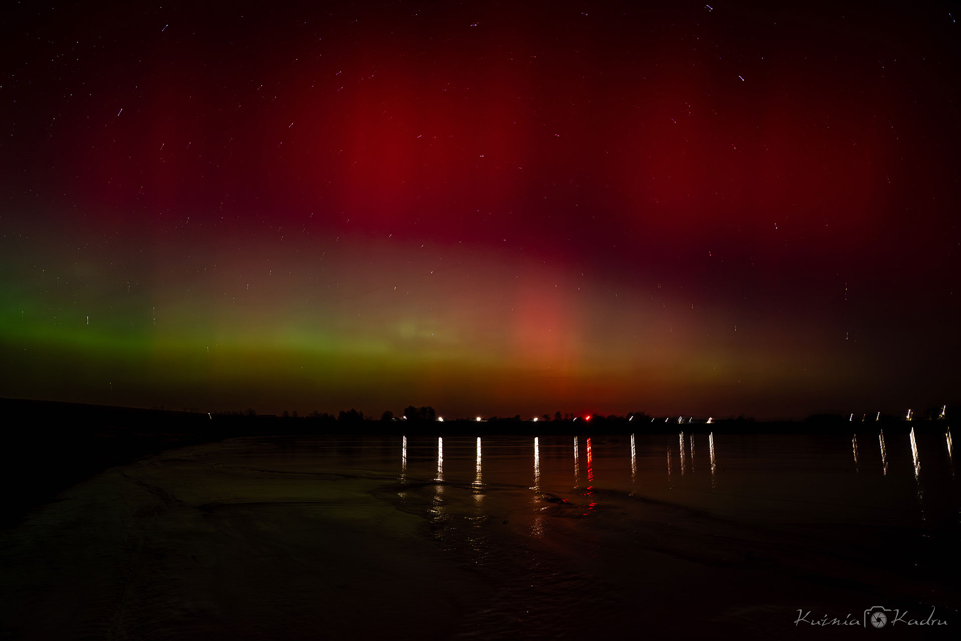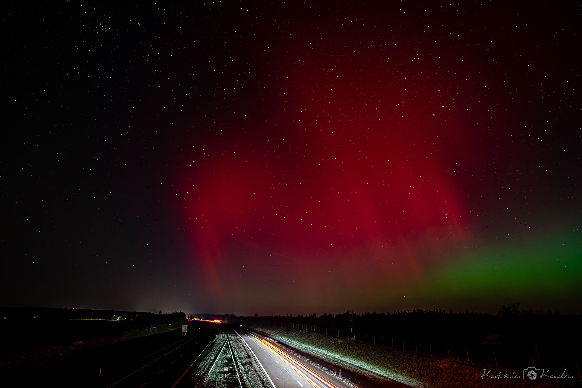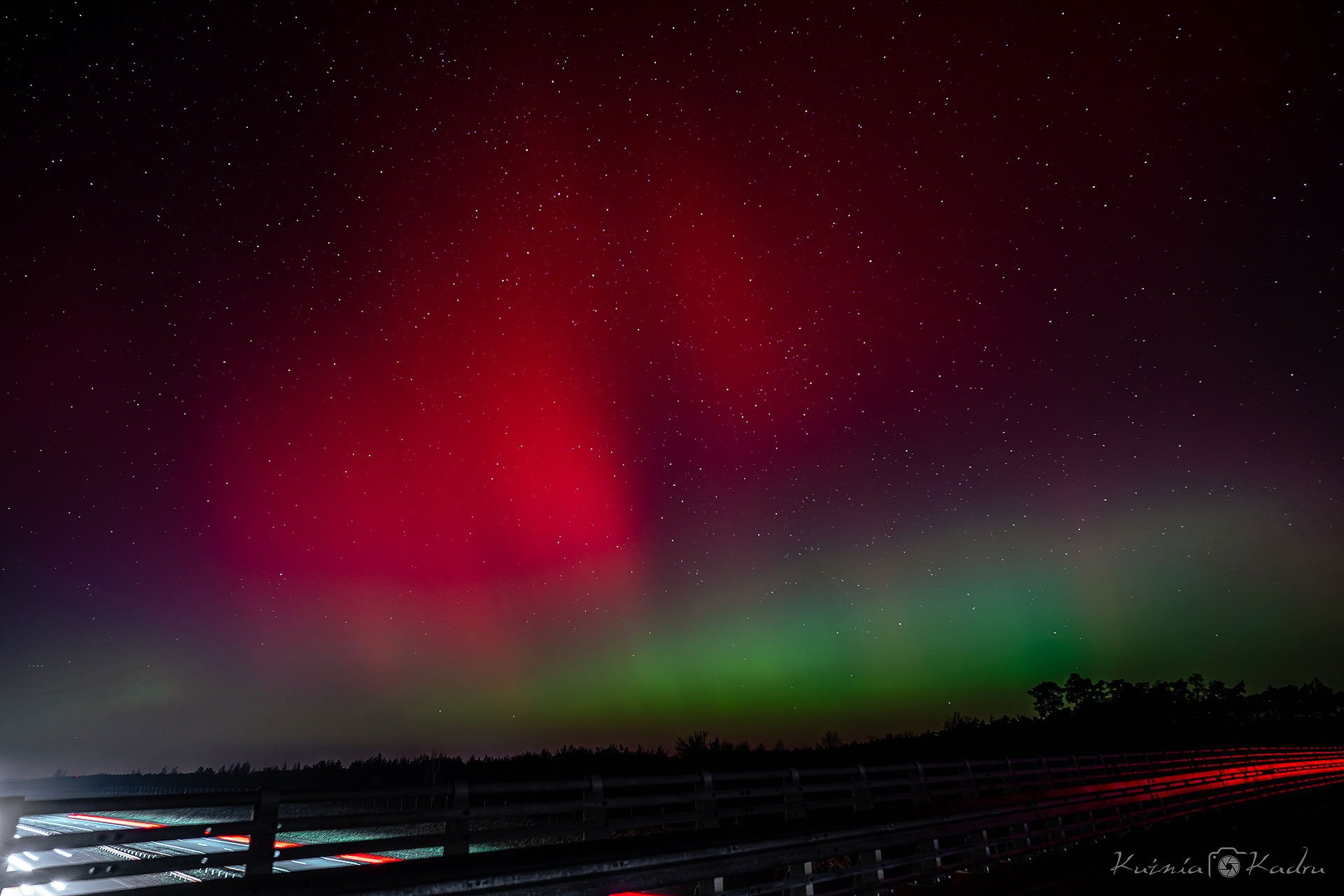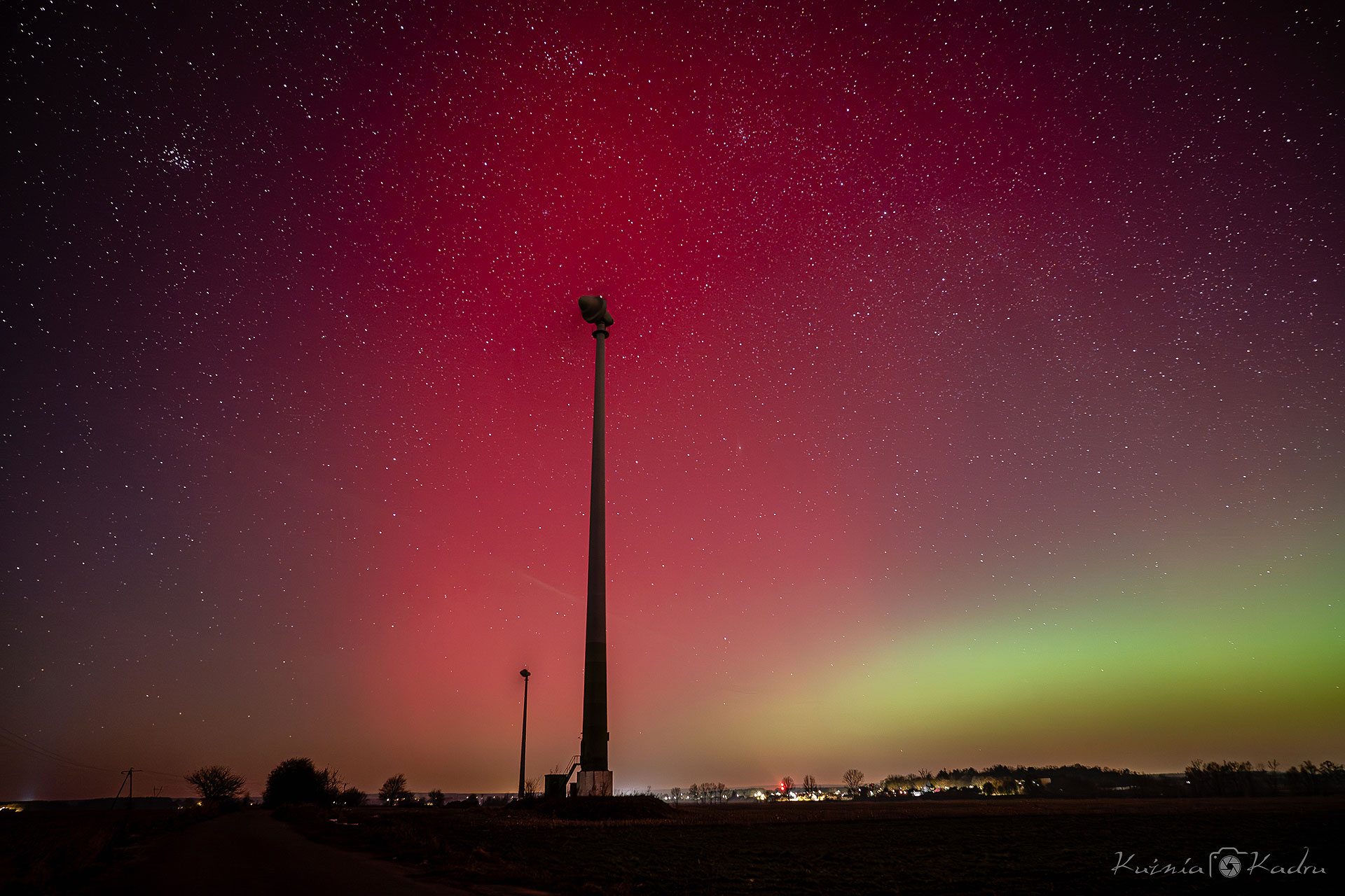 Na niebie pojawiły się zielone wstęgi światła, a także rozległe obszary purpury i czerwieni. Zjawisko miało charakter dynamiczny – struktury zmieniały kształt i intensywność w krótkich odstępach czasu. Najsilniejsza faza obserwacji przypadła między godziną 22:00 a 24:00, gdy świetlne pasma sięgały wysoko ponad północny horyzont, miejscami zbliżając się do zenitu.