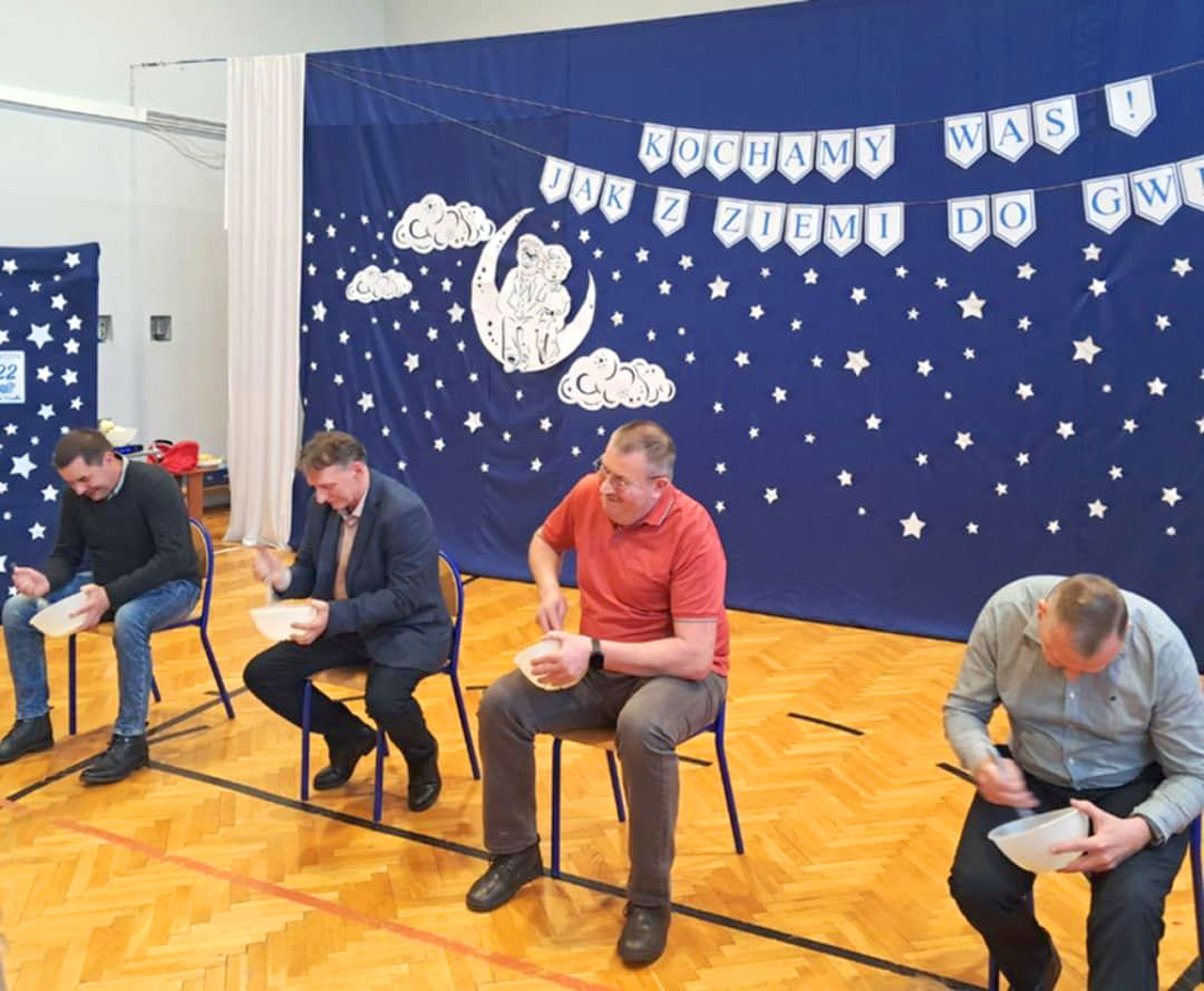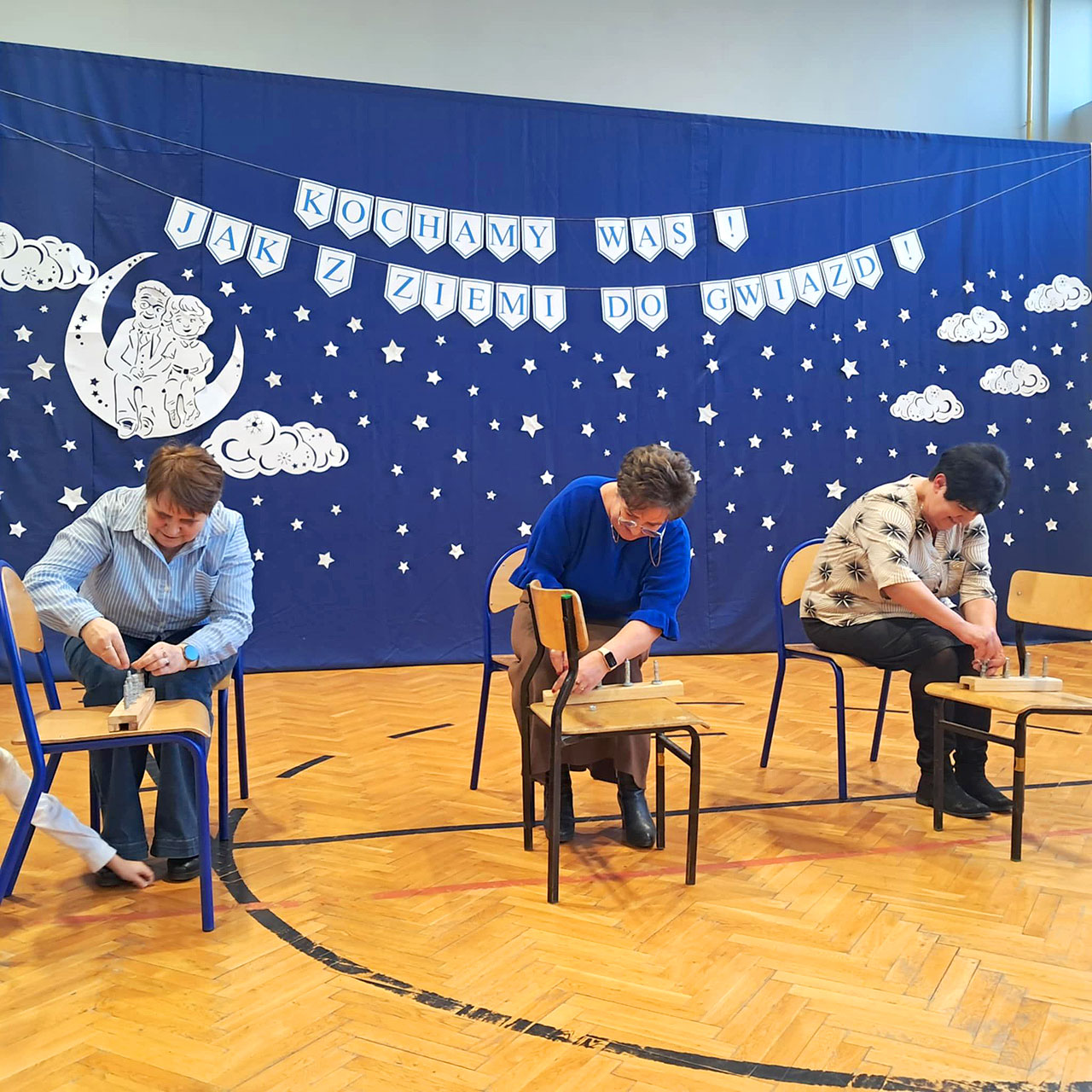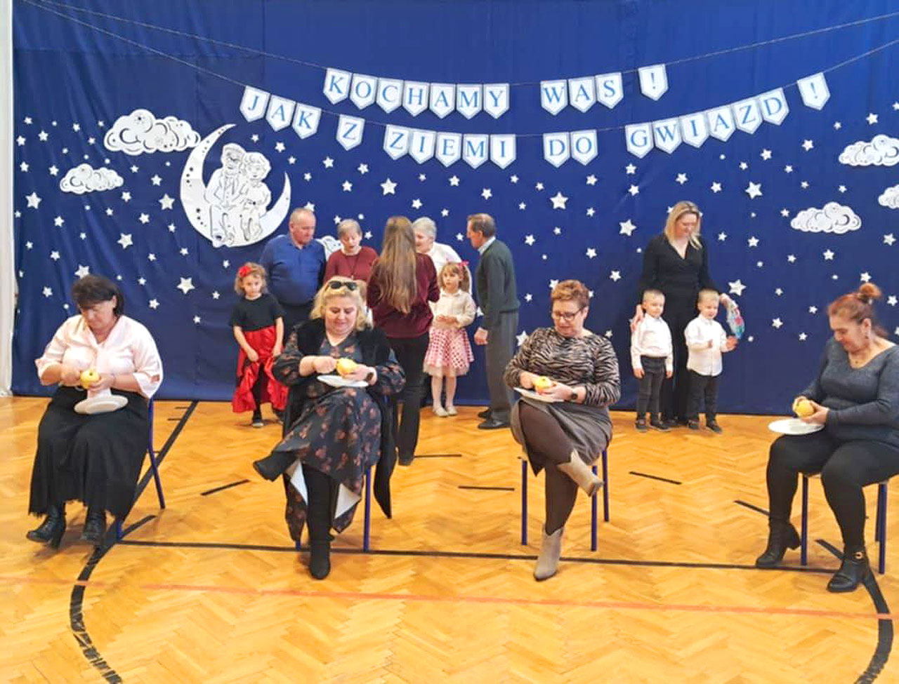 Po zakończeniu części artystycznej uczestnicy zostali zaproszeni na słodki poczęstunek, który stworzył przestrzeń do rozmów i spokojnego świętowania. Następnie zorganizowano konkursy dla dziadków, w których chętnie brali udział zarówno zaproszeni goście, jak i dzieci.