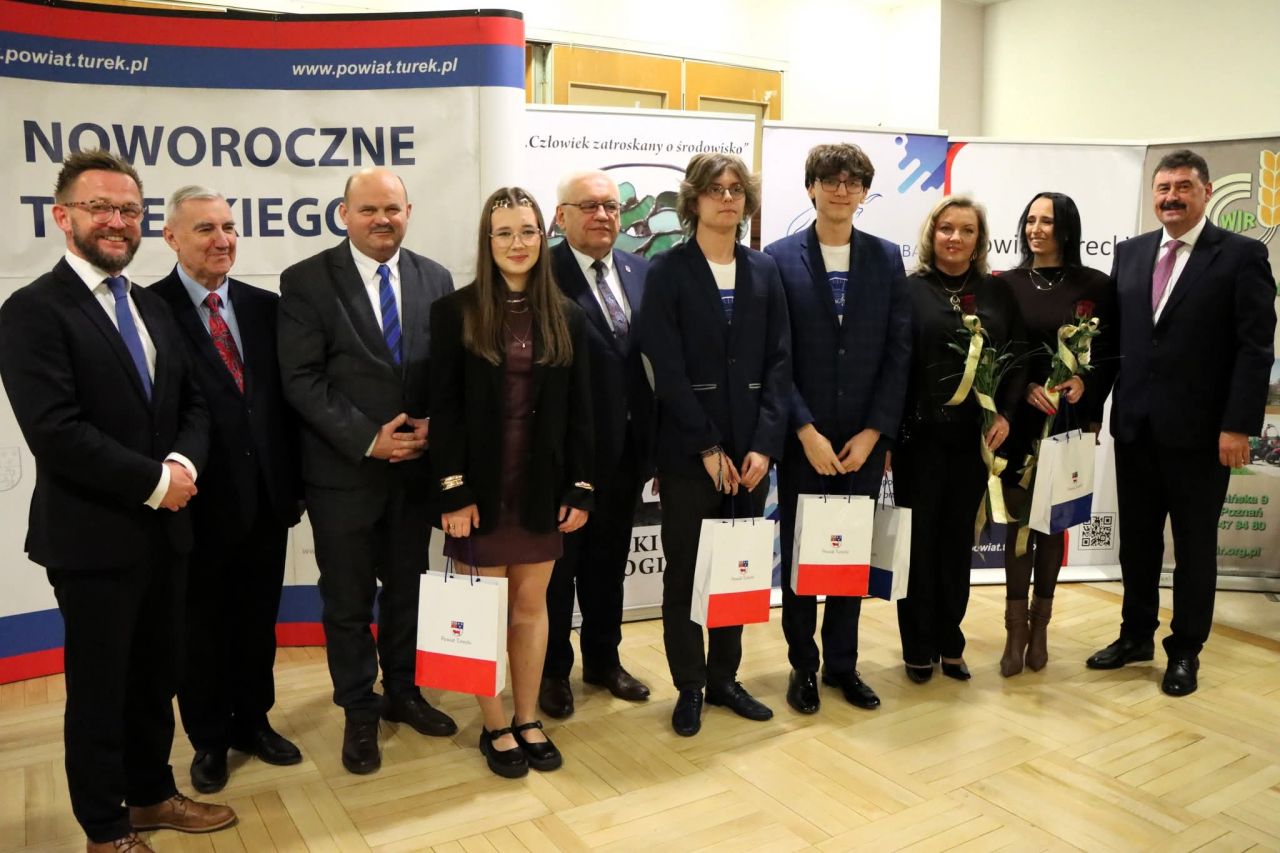 Stałym elementem Spotkania Noworocznego było wręczenie tytułów i nagród osobom oraz podmiotom szczególnie zasłużonym w minionym roku. Tytuł Człowieka Powiatu Tureckiego A.D. 2025 otrzymała Beata Bartczak, Dyrektor Powiatowego Urzędu Pracy w Turku. Firmą Roku 2025 została spółka ALFA PHARM Małgorzata Janusik, Jarosław Janusik. Tytuł Rolnik Roku Powiatu Tureckiego przyznano Jolancie i Piotrowi Geblerom, prowadzącym nowoczesną hodowlę boczniaków w gminie Kawęczyn. Wyróżnienie Człowiek Zatroskany o Środowisko trafiło do Wojciecha Ruska, byłego leśniczego Nadleśnictwa Turek.