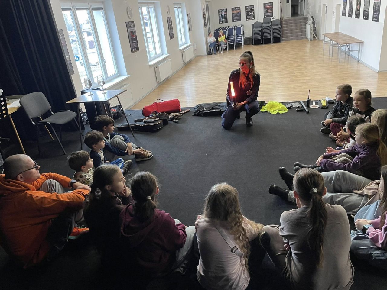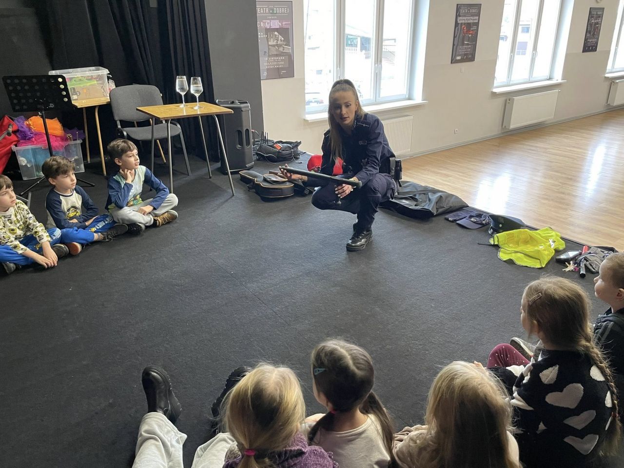 O tajnikach zawodu policjanta opowiadała dzieciom, biorącym udział w zajęciach zorganizowanych przez Centrum Kultury w Dobrej, mł. asp. Marlena Przybylak.